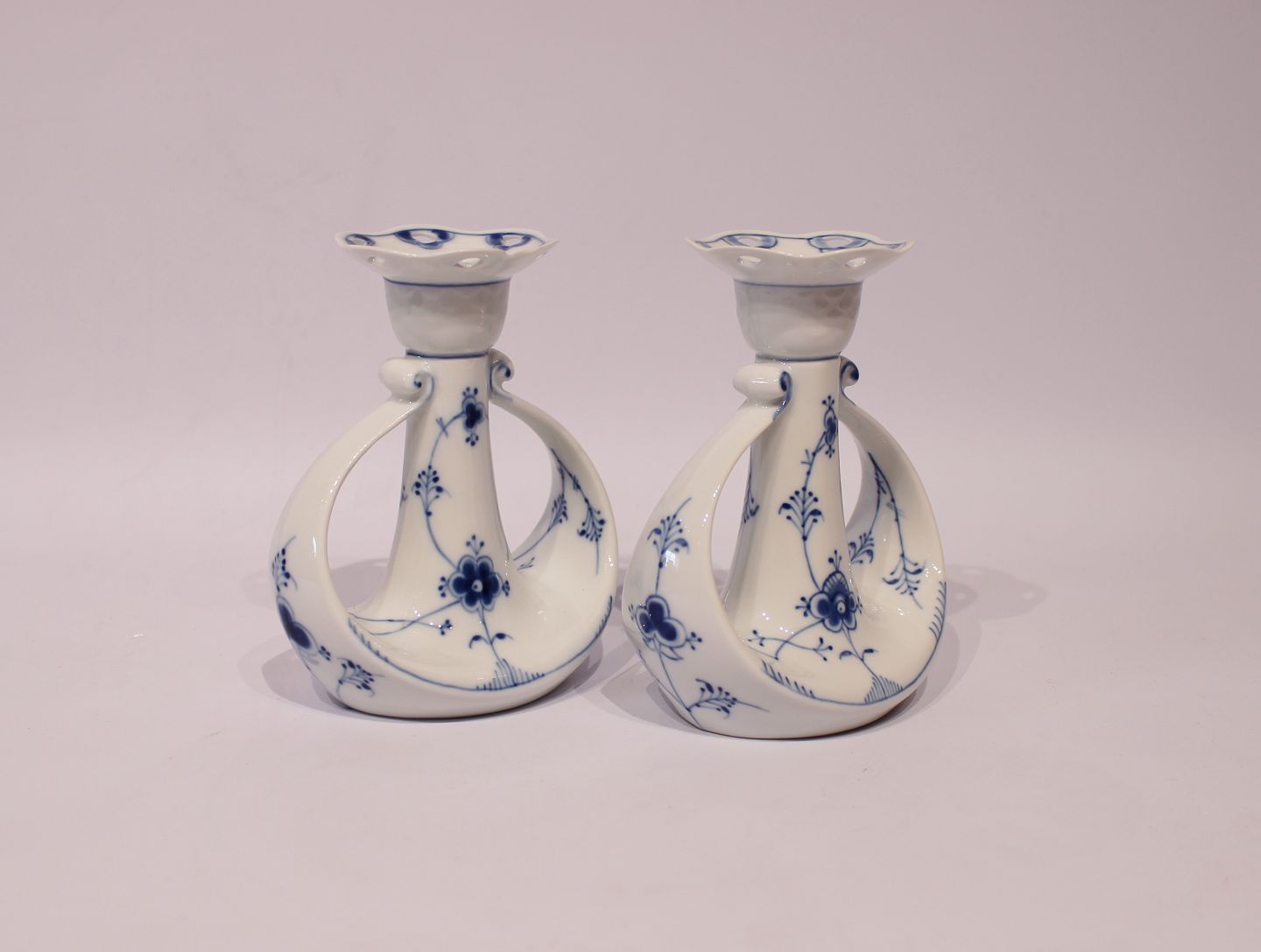 SoldB&G blue fluted/blue painted set of candlesticks, #503.