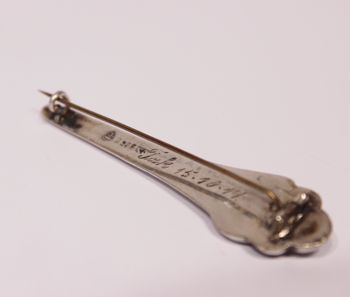 Brooch with light stone and in 826 silver.