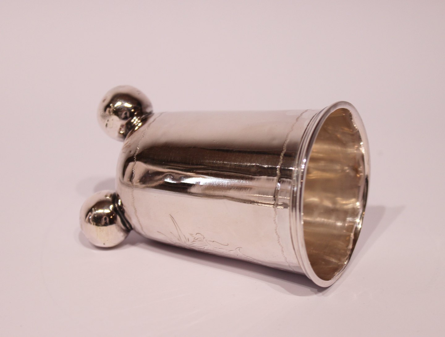 Small cup on round feet decorated with chasings in 830 silver from the start of the 18th century.