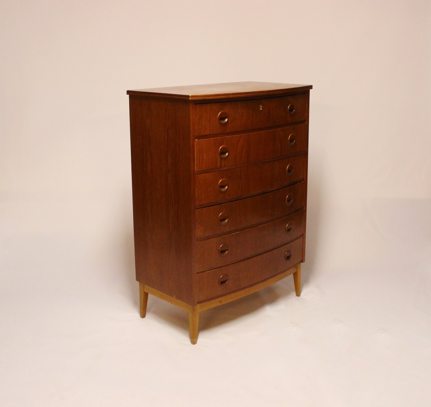 SolgtKommode med 6 skuffer i teak og egetræ designet af Kai Kristiansen og fra 1960erne. Kommoden er i flot brugt stand.