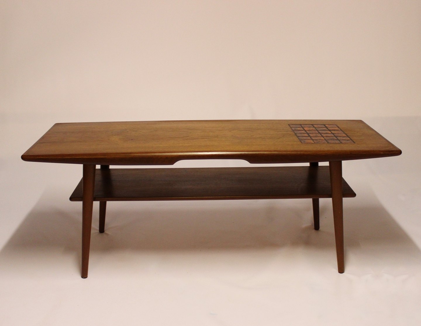 Coffee table in teak with tiles in dark colors of danish design from the 1960s. The table is in great condition.