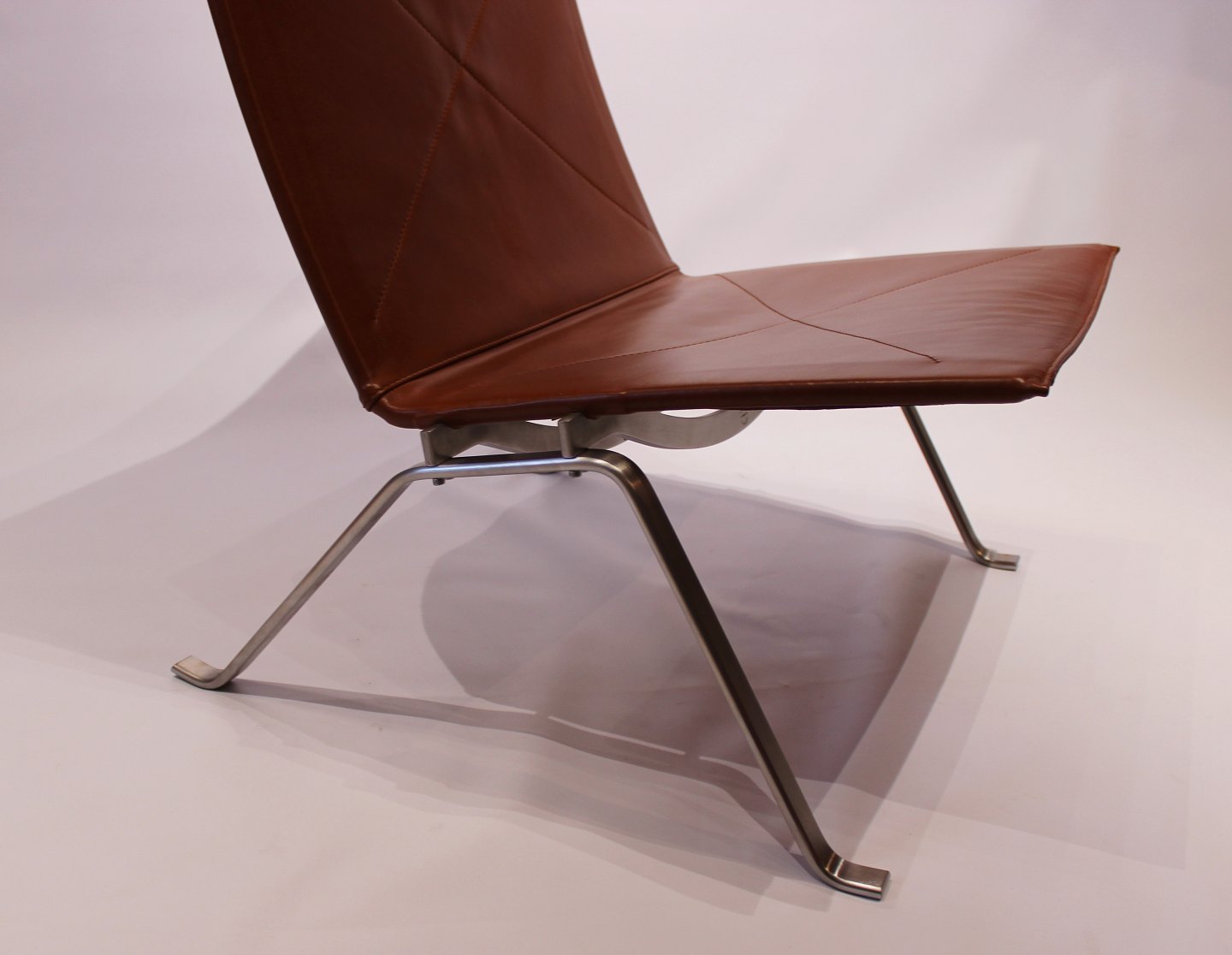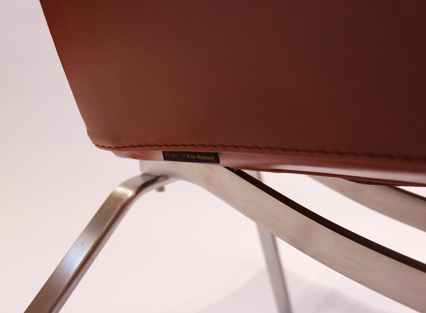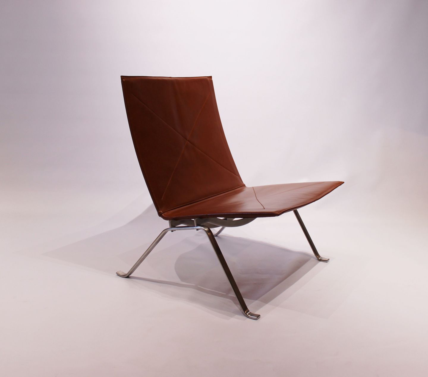 SoldEasy chair, model PK22, designed by Poul Kjærholm and manufactured by Fritz Hansen in 2016. The chair is with original upholstery in walnut elgance leather and frame of chrome.