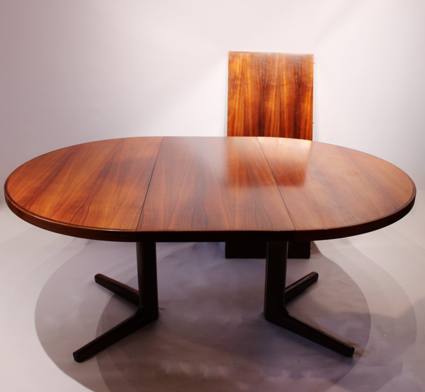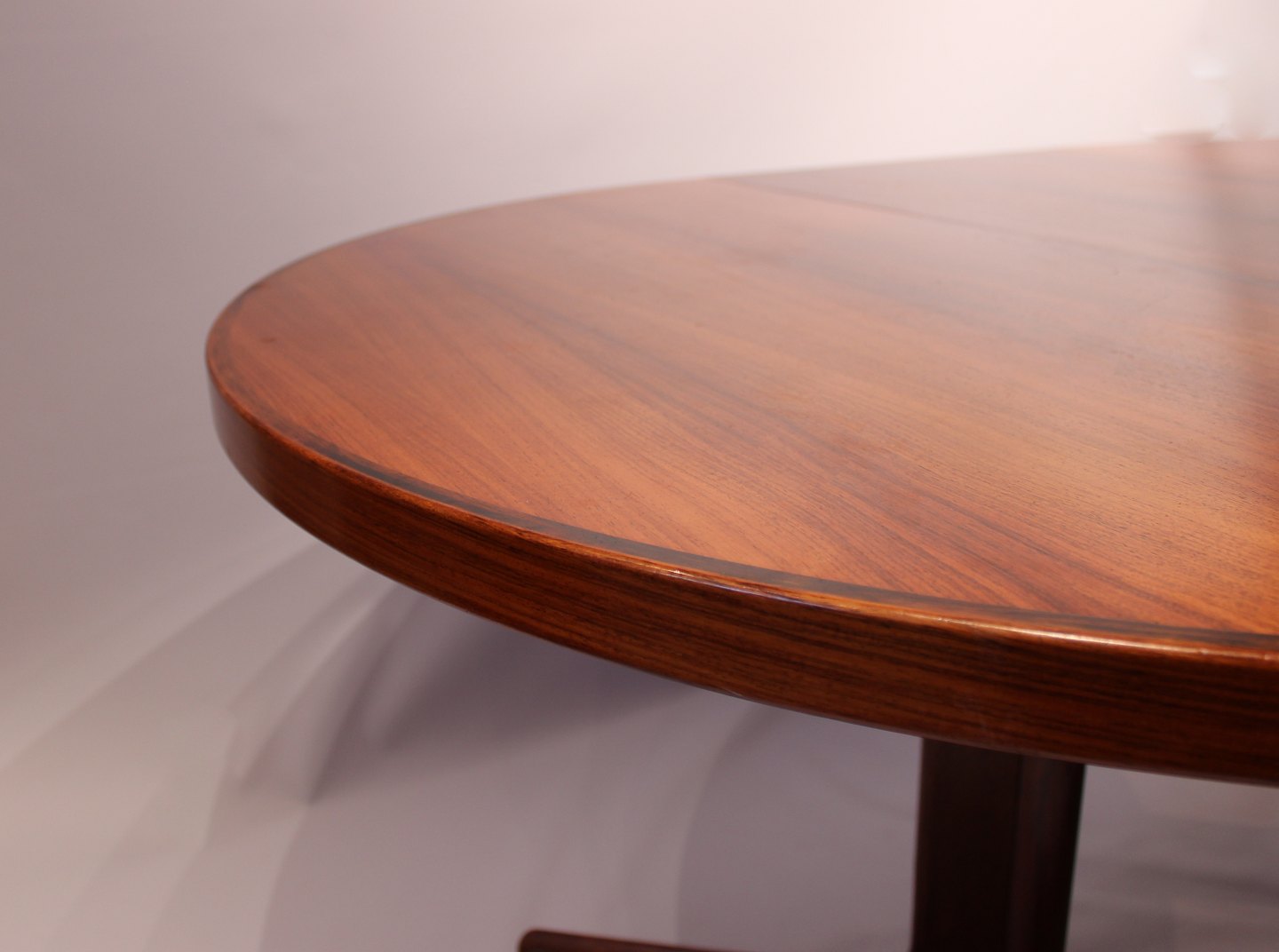 Round dining table in rosewood with 2 extension leaves of danish design from Vejle furniture factory, 1960s.