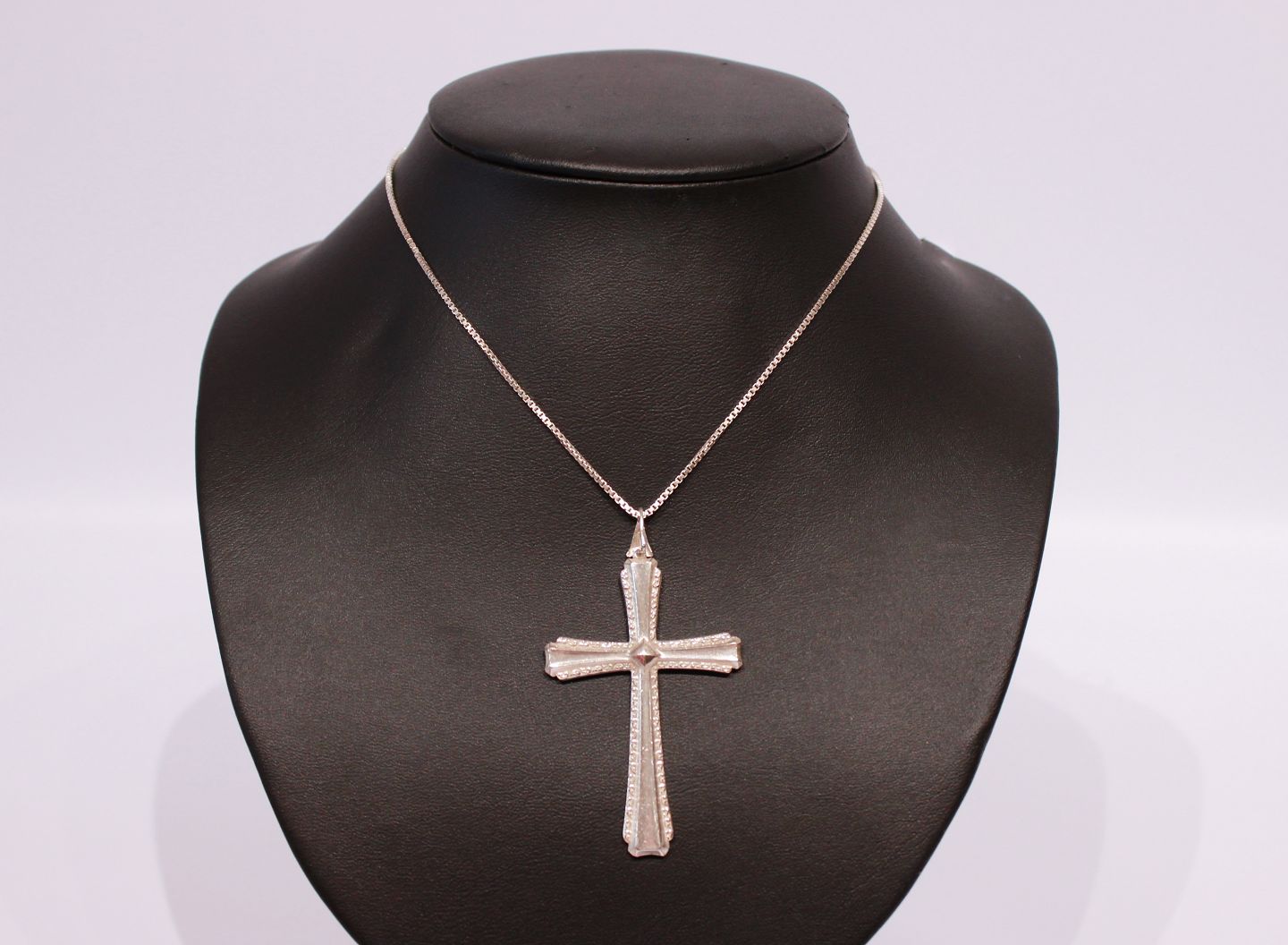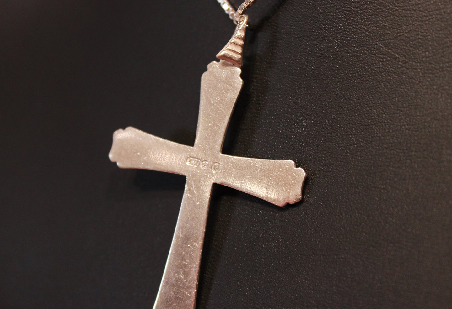 Stort vedhæng i form af kors, stemplet H, i 830 sølv.