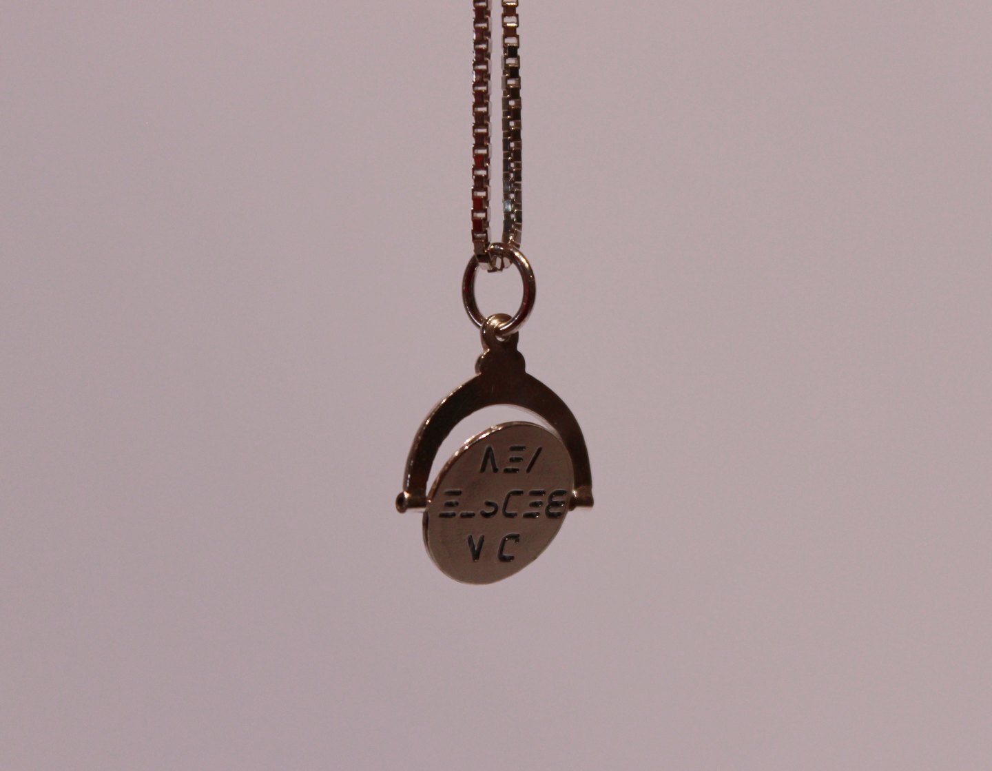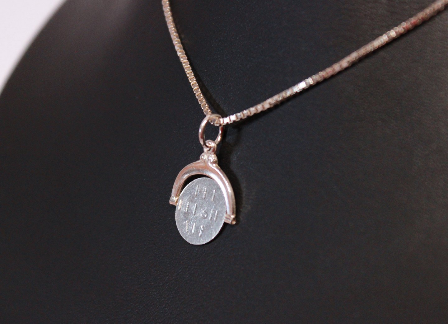 SoldSmall "turning" pendant with symbols in silver. Similar chain can be purchased separately.