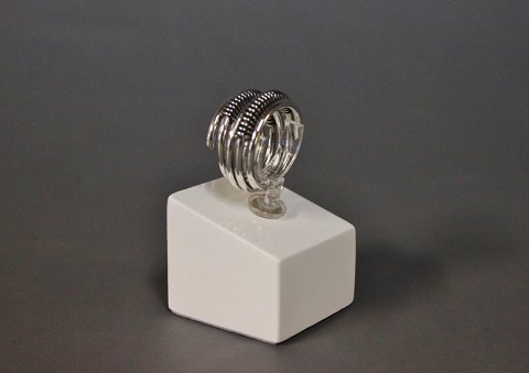 Ring med stor rav klump dekoreret med fjer i 925 sterling sølv og stemplet SAN.