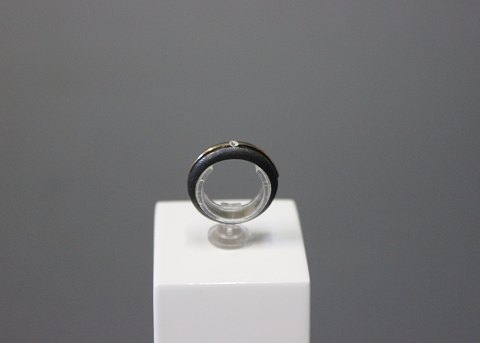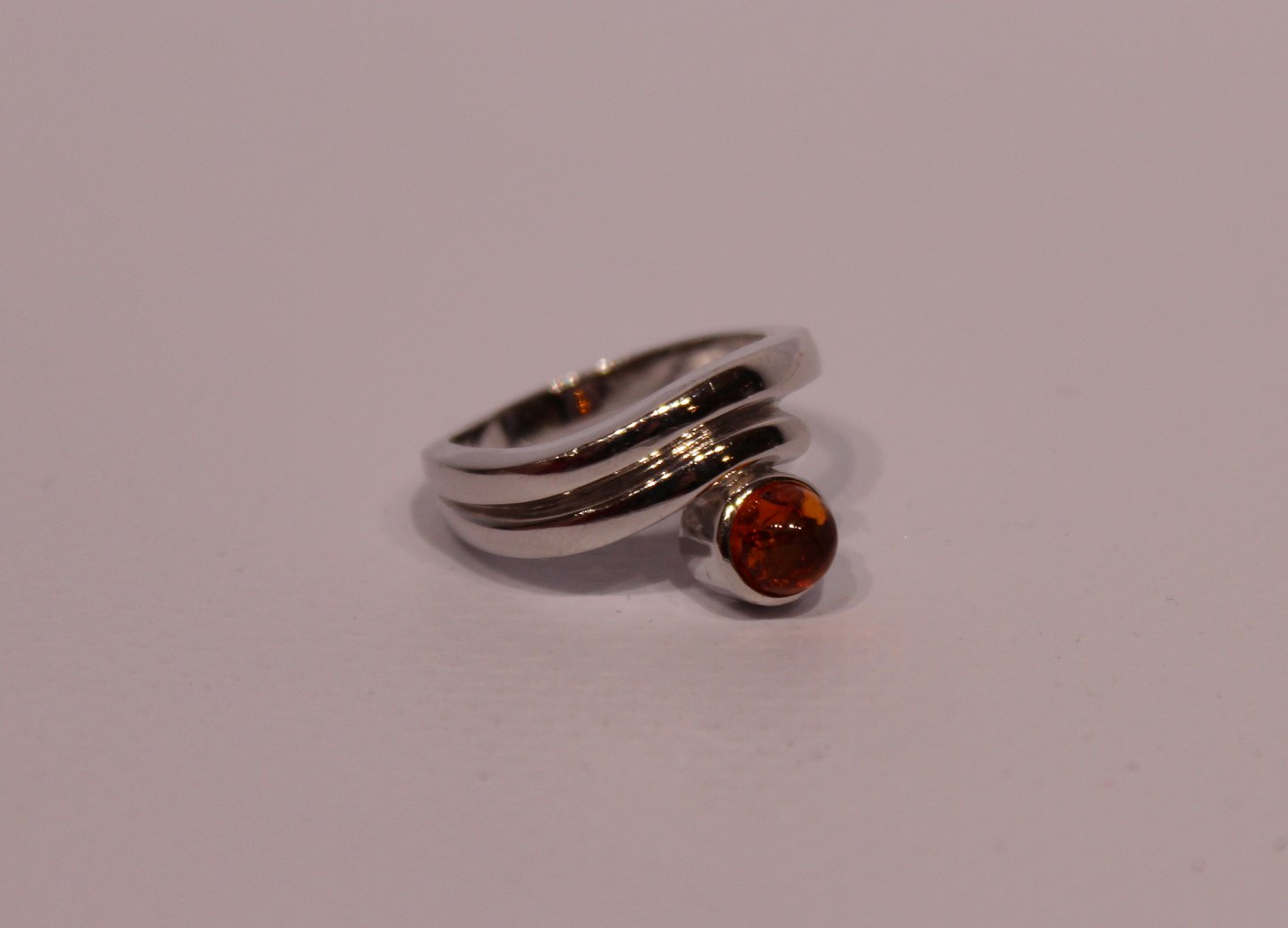 Ring med rav sten, stemplet NP og af 925 sterling sølv.