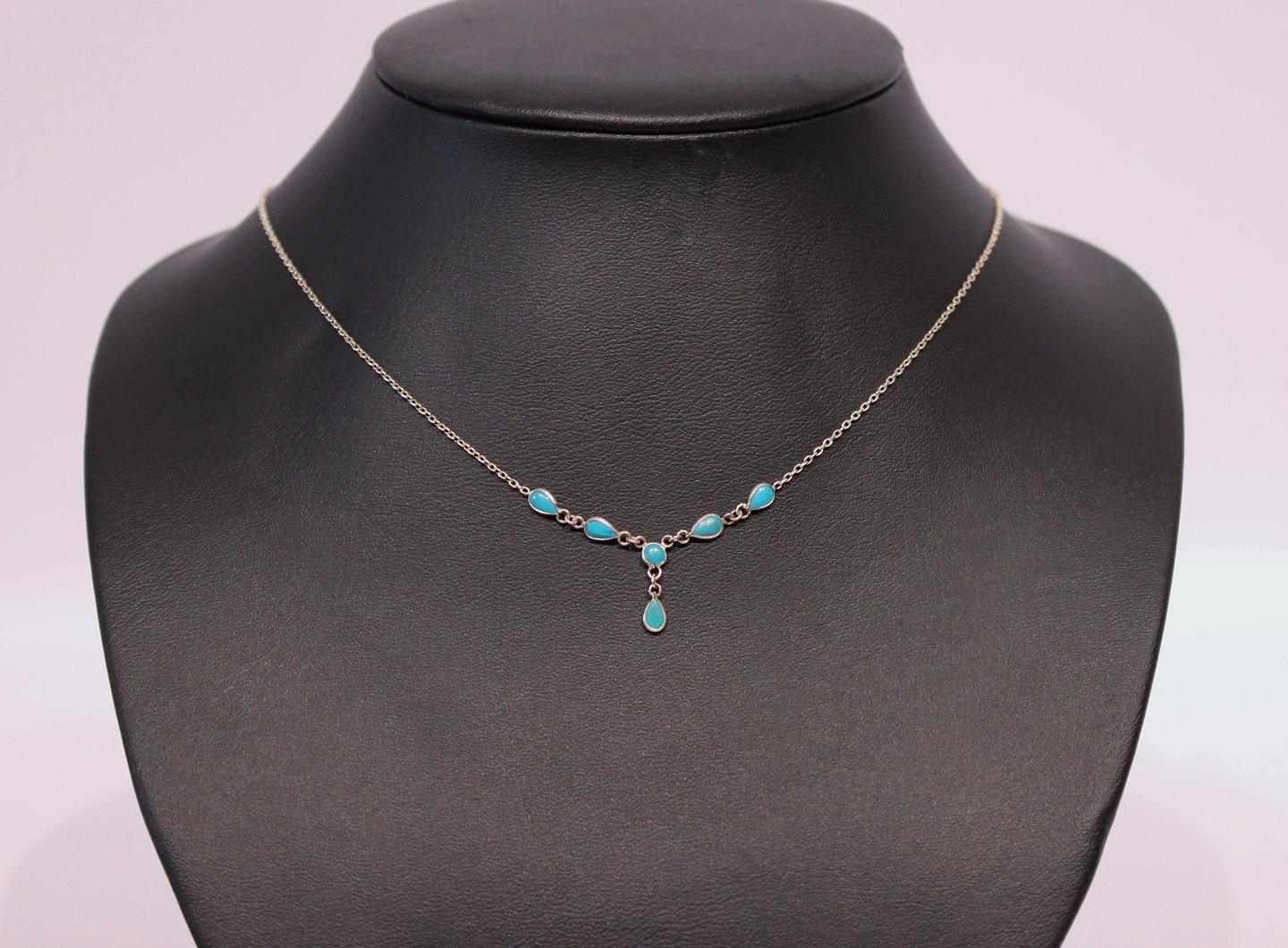 Halskæde dekoreret med blå sten og af 925 sterling sølv.