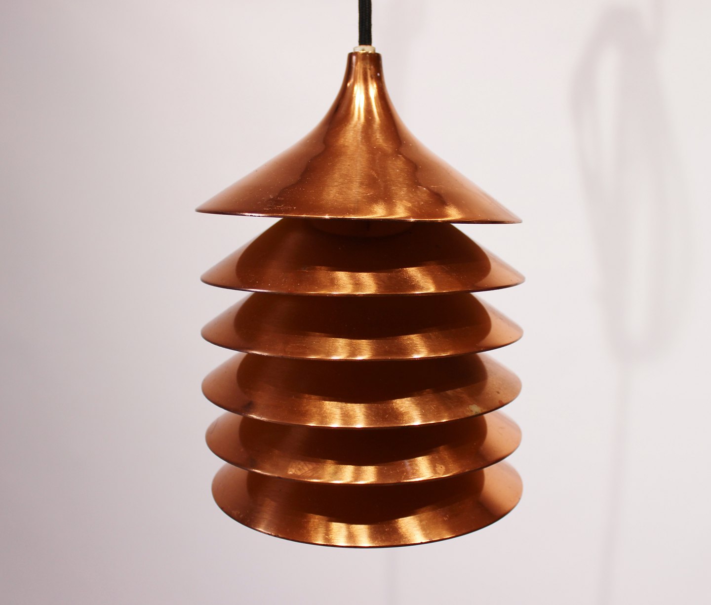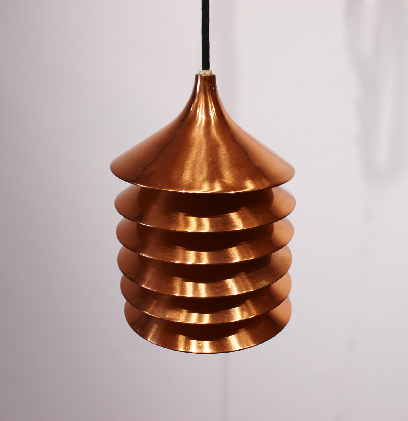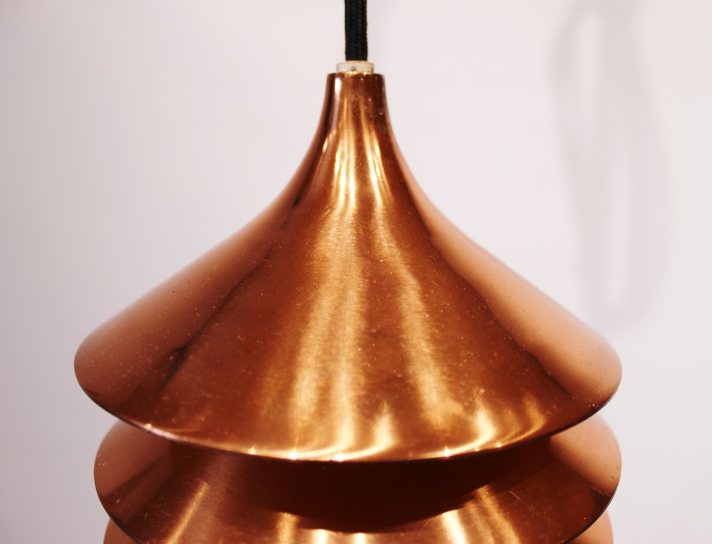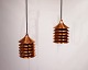 Et par, Duett, kobberpendler designet af Bent Boysen i 1970erne. Lamperne er i flot brugt stand med ny sort stofledning.