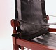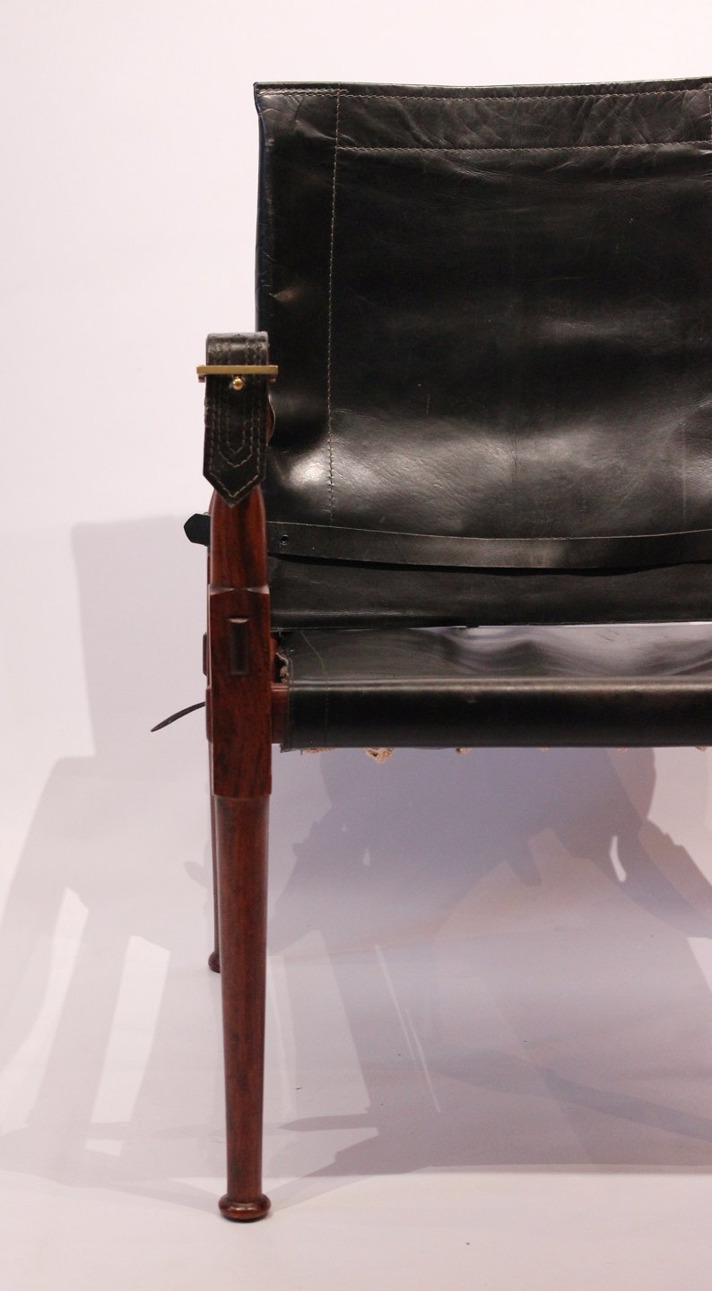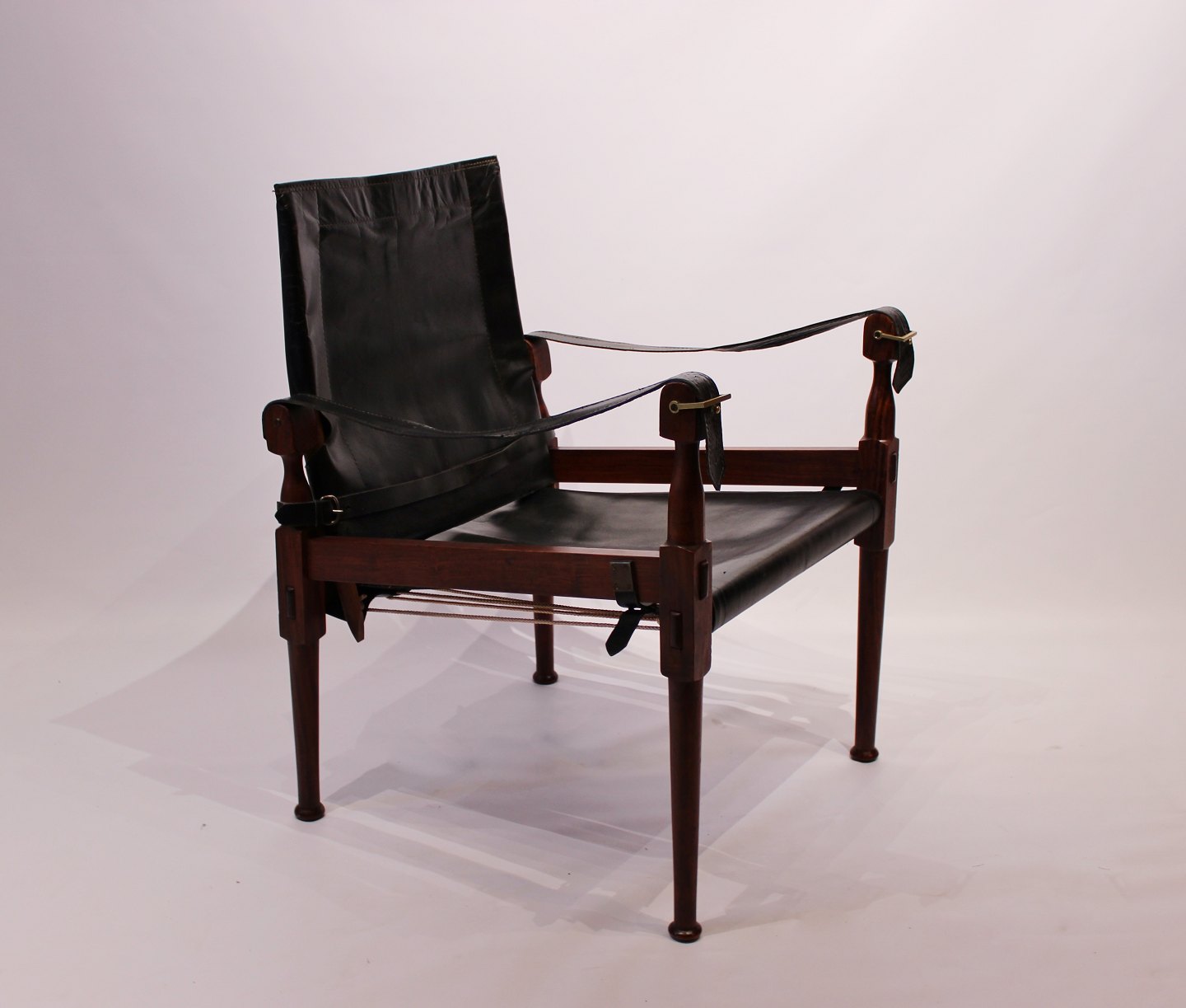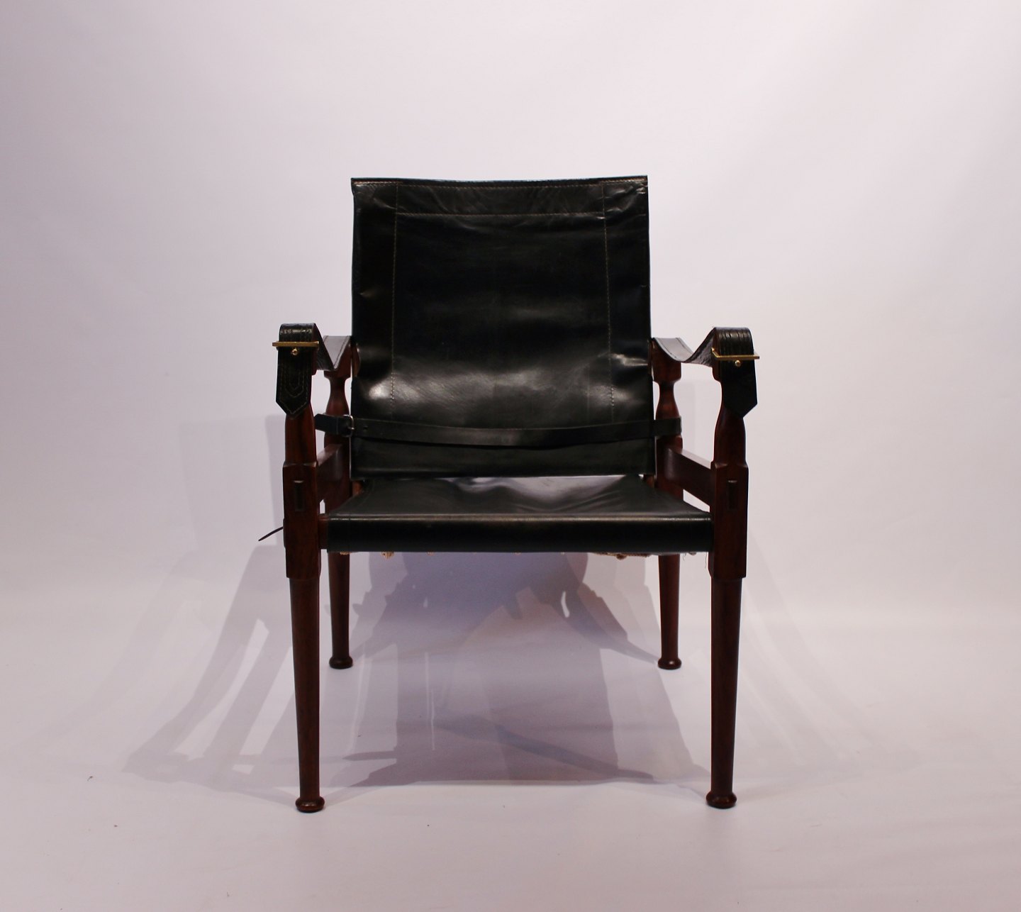 SolgtEt par Safari stole af M. Hayat & Brothers i valnød og sort patineret kernelæder fra Pakistan omkring 1970erne. Stolene er i flot brugt stand.
