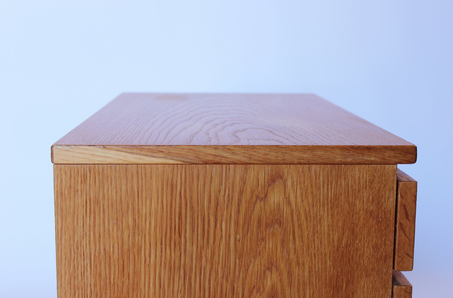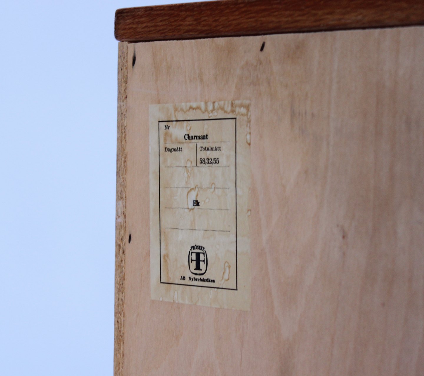 SoldSmall oak chest of drawers with leather handles by Fröseke Nybrofabrik from the 1960s.
