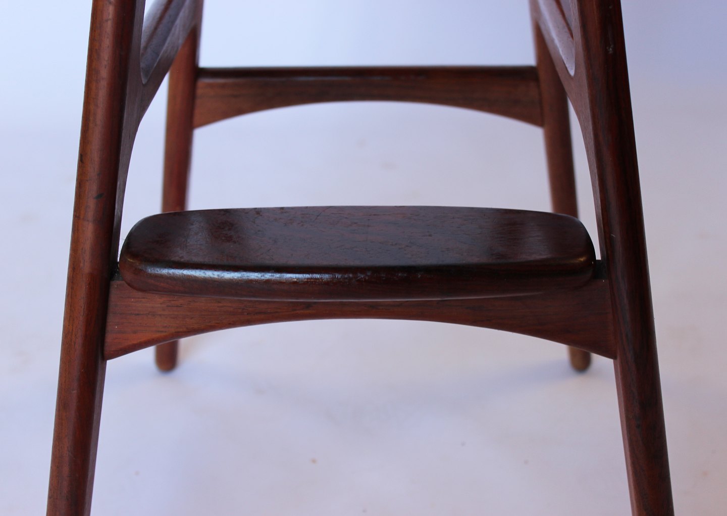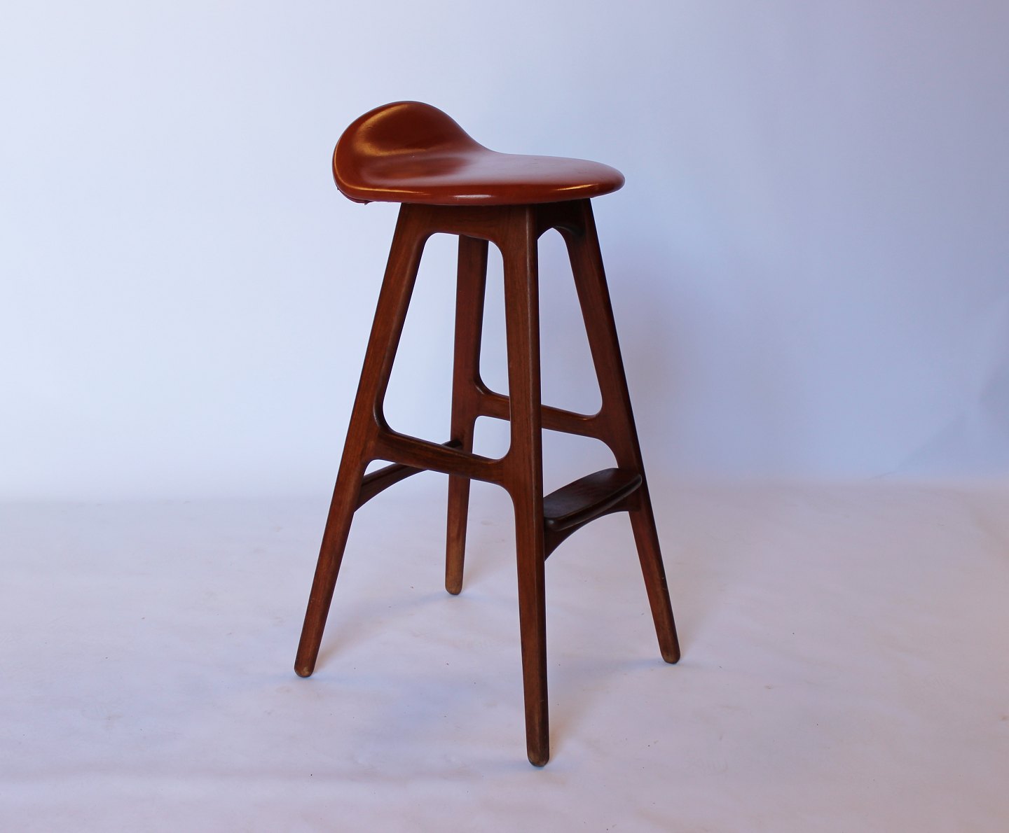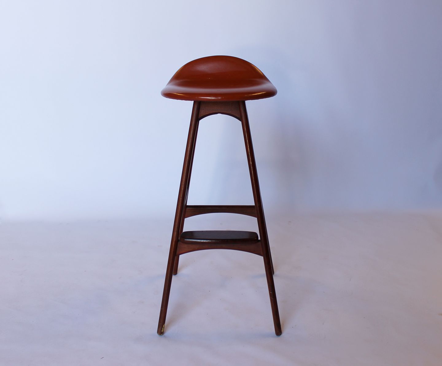 SoldBar stool, model OD61, designed by Erik Buch and manufactured by Odense furniture factory. The stools are of rosewood and elegance leather seats.