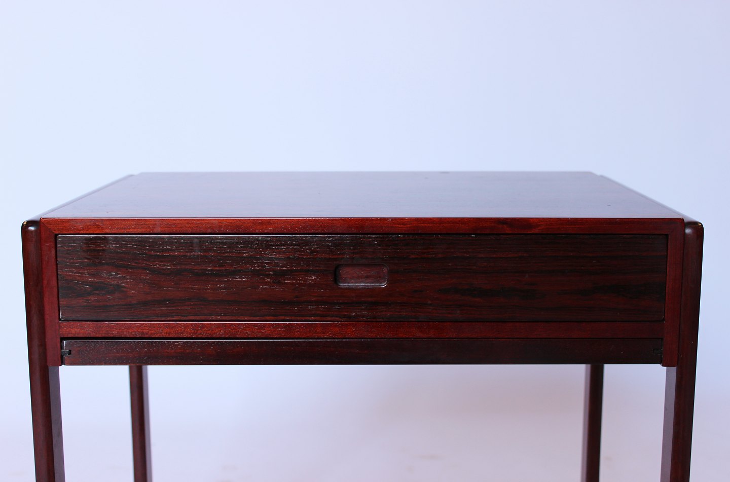 This small sewing table exudes the classic elegance and functionality that characterizes Danish design from the 1960s. Made from rosewood, a material known for its warm color and beautiful grain, the table adds a sophisticated atmosphere to any room.