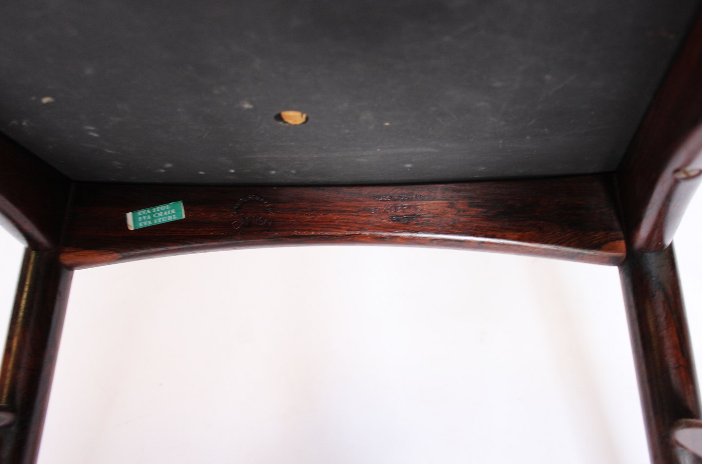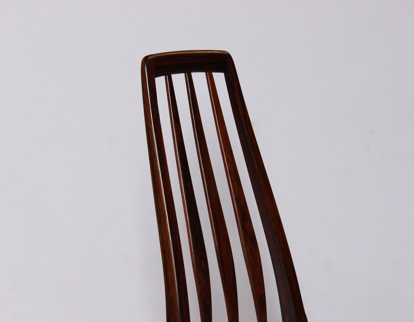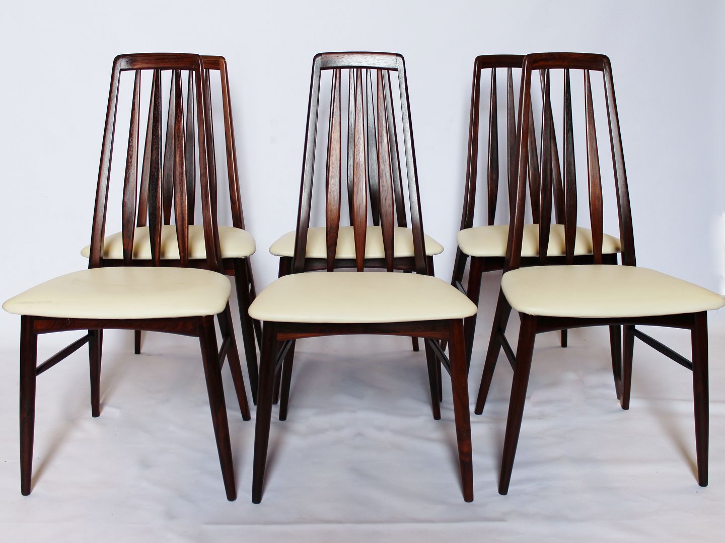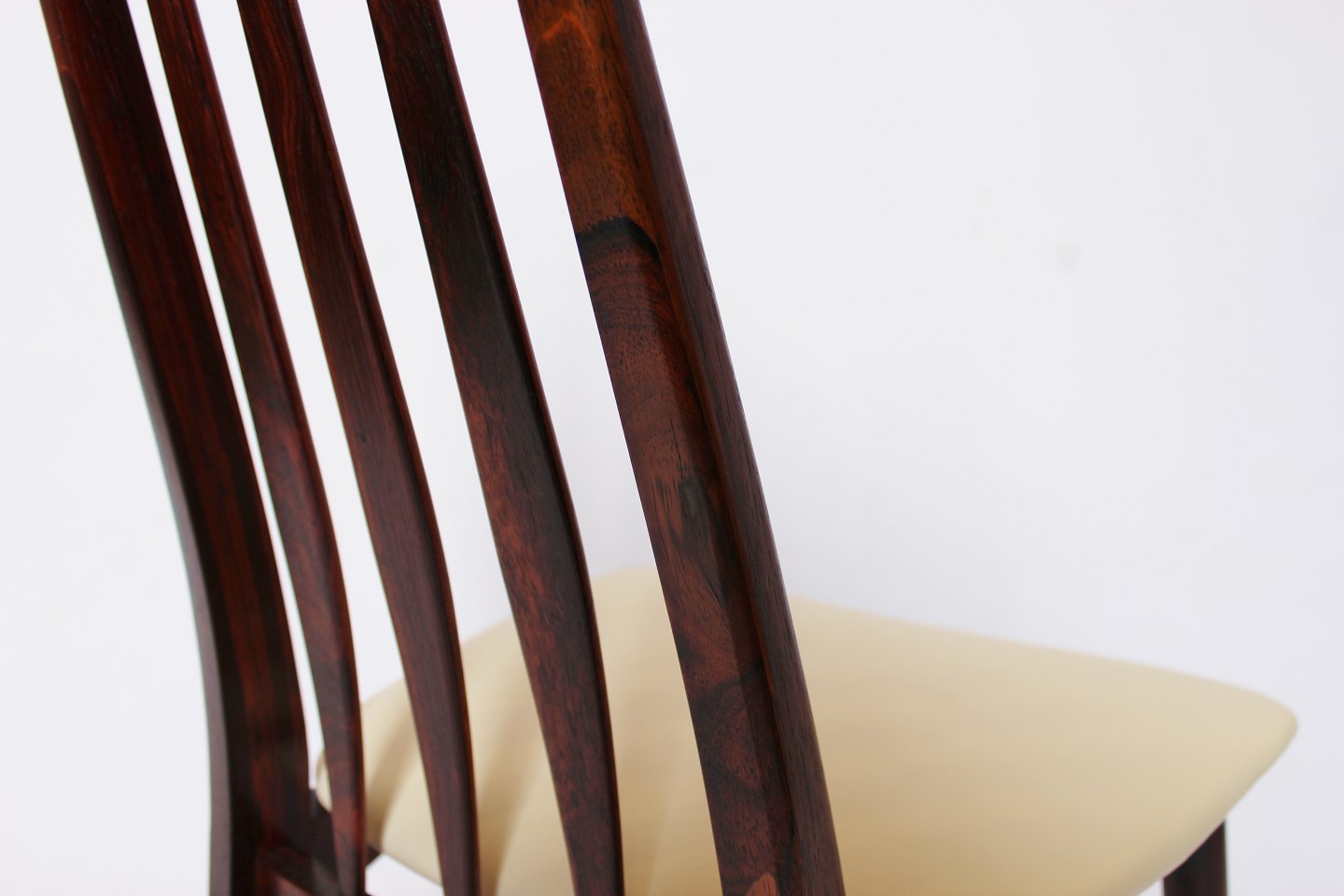 SoldSet of 6 Eva dining chairs in rosewood and white leather seats designed by Niels Koefoed and manufactured Koefoed Furniture factory, Hornslet in the 1960s.