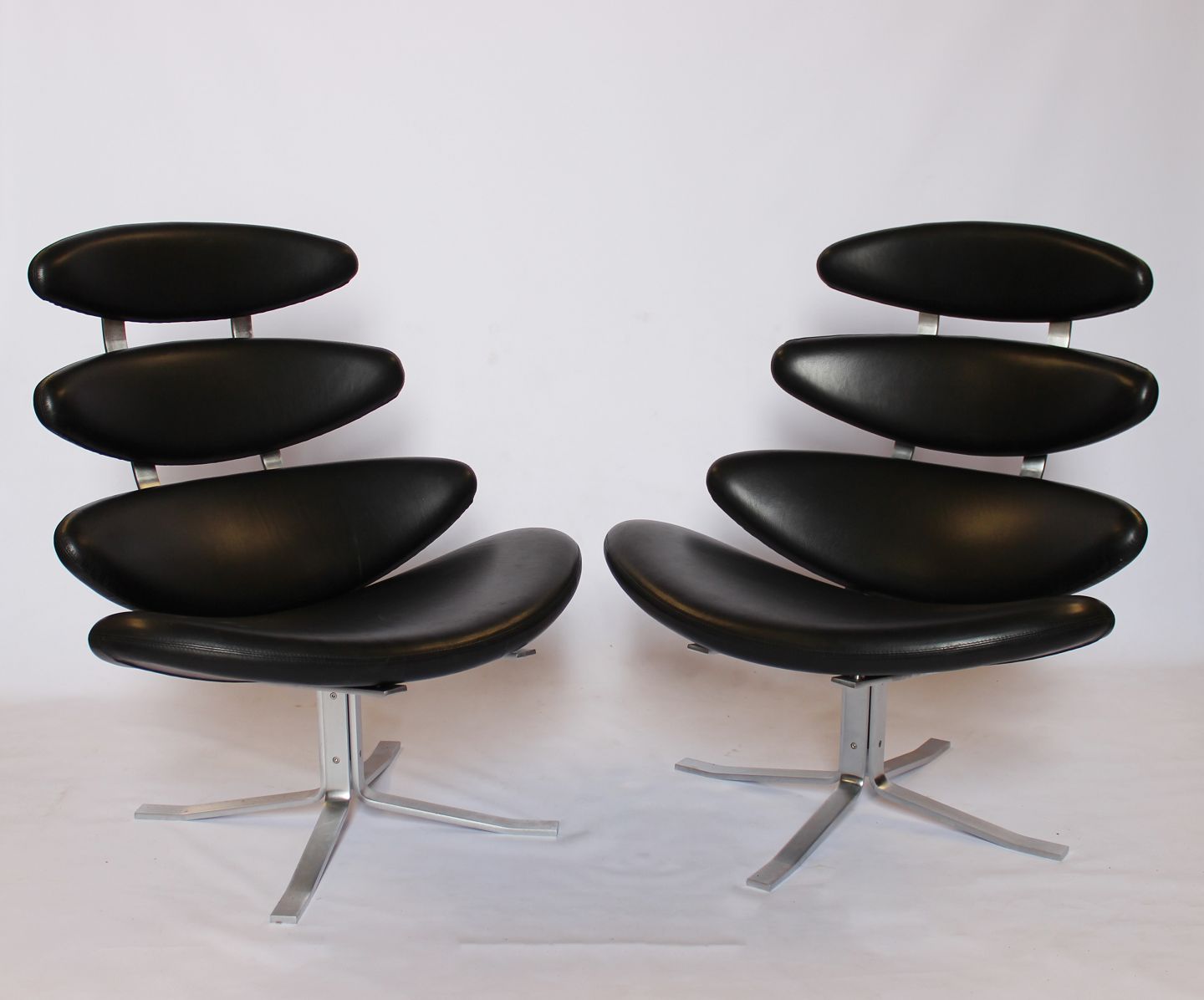 Set of two Corona easy chairs, model EJ 5, in black Cava leather, by Poul M. Volther and Erik Jørgensen.