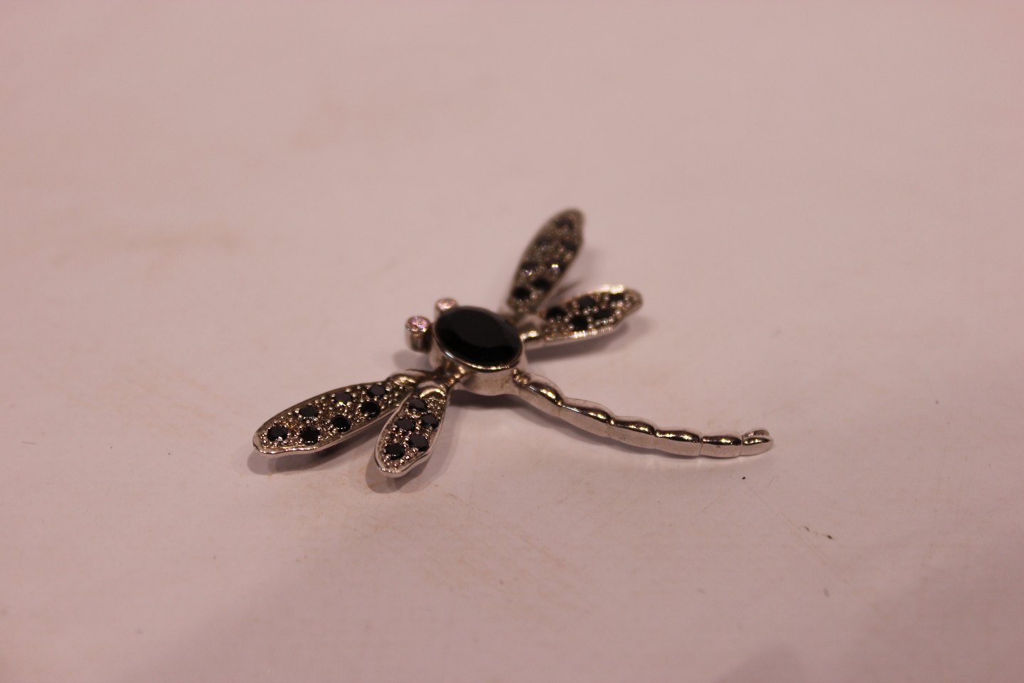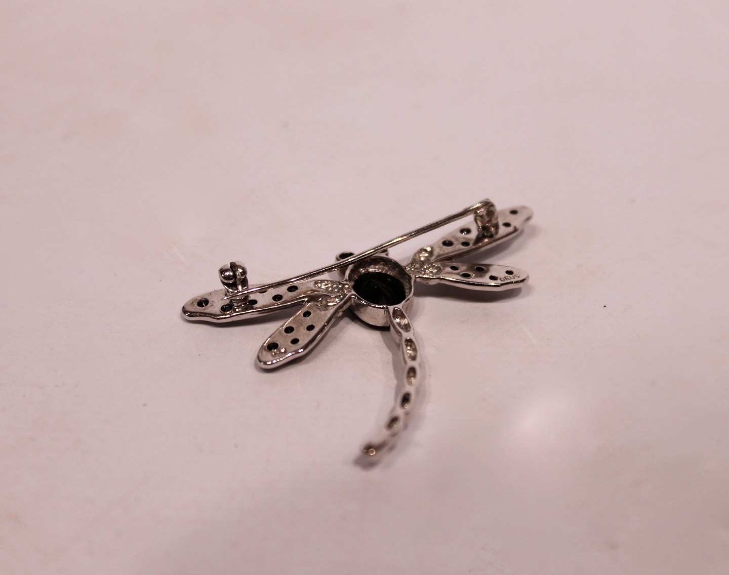 SoldBrooch in the shape of a dragon fly, stamped DEUS with stones and of 925 sterling silver.
