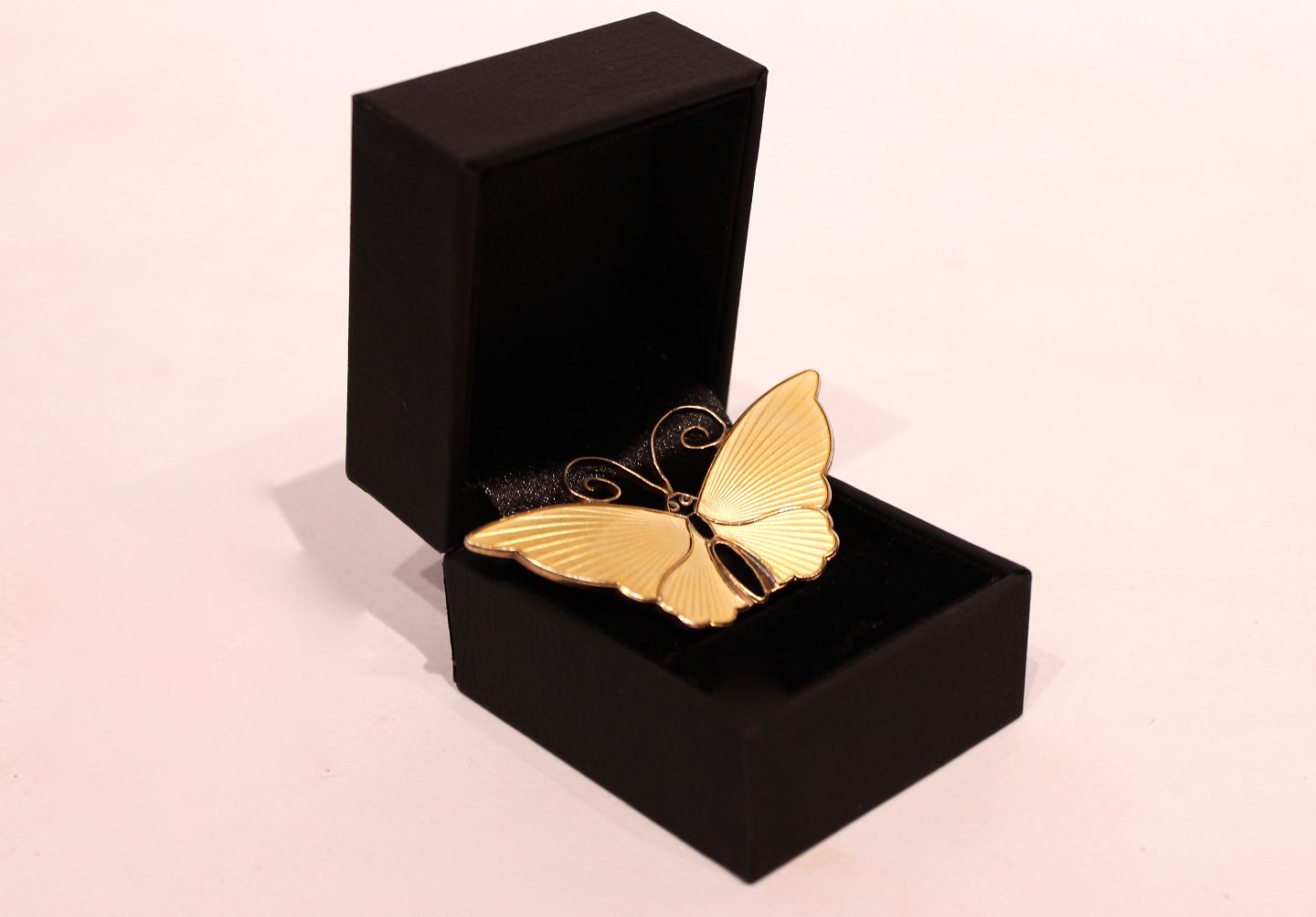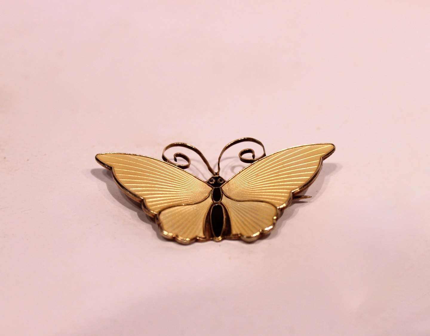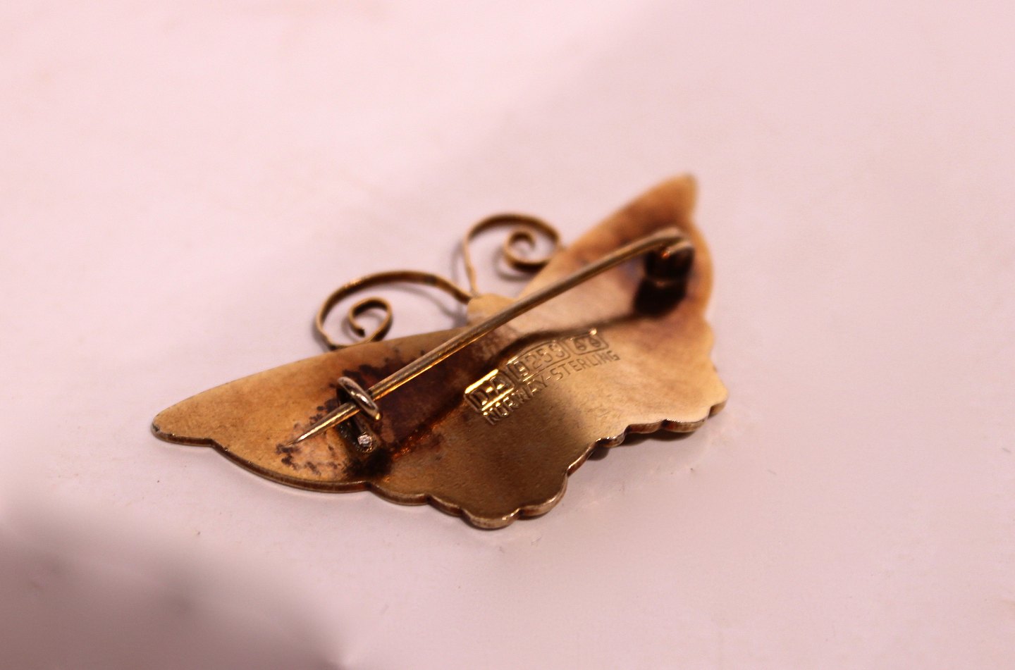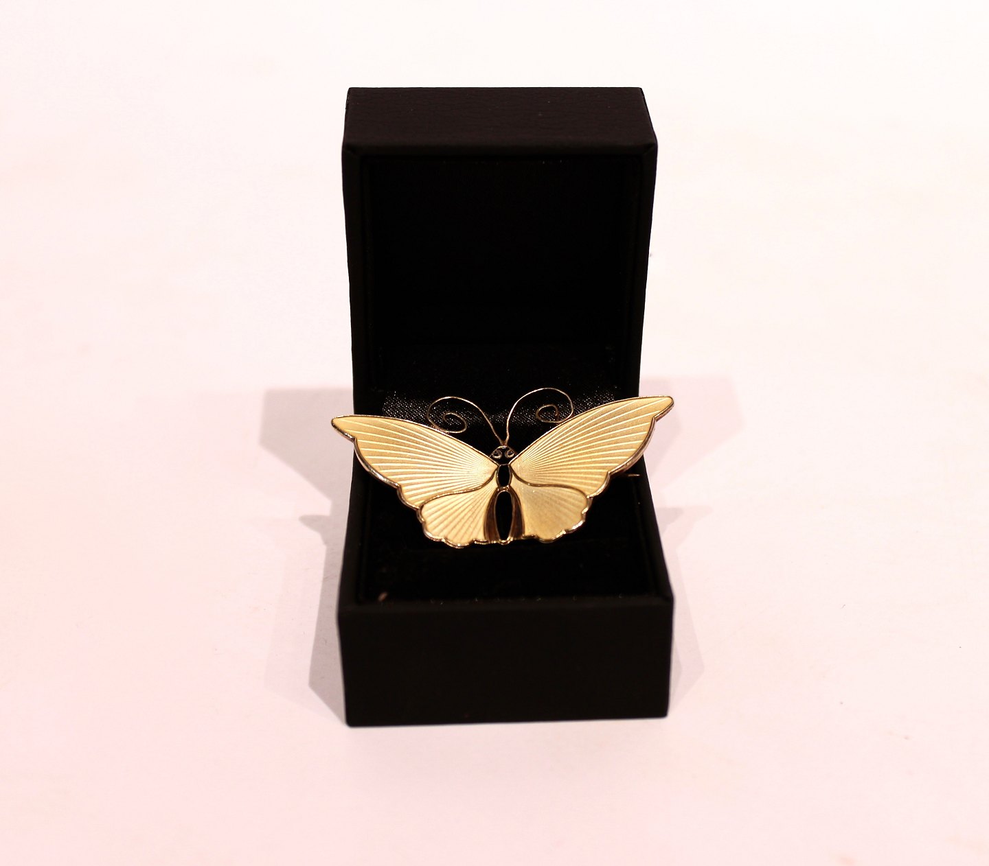 SolgtBroche i form af en sommerfugl af Norsk 925 sterling sølv og emalje.