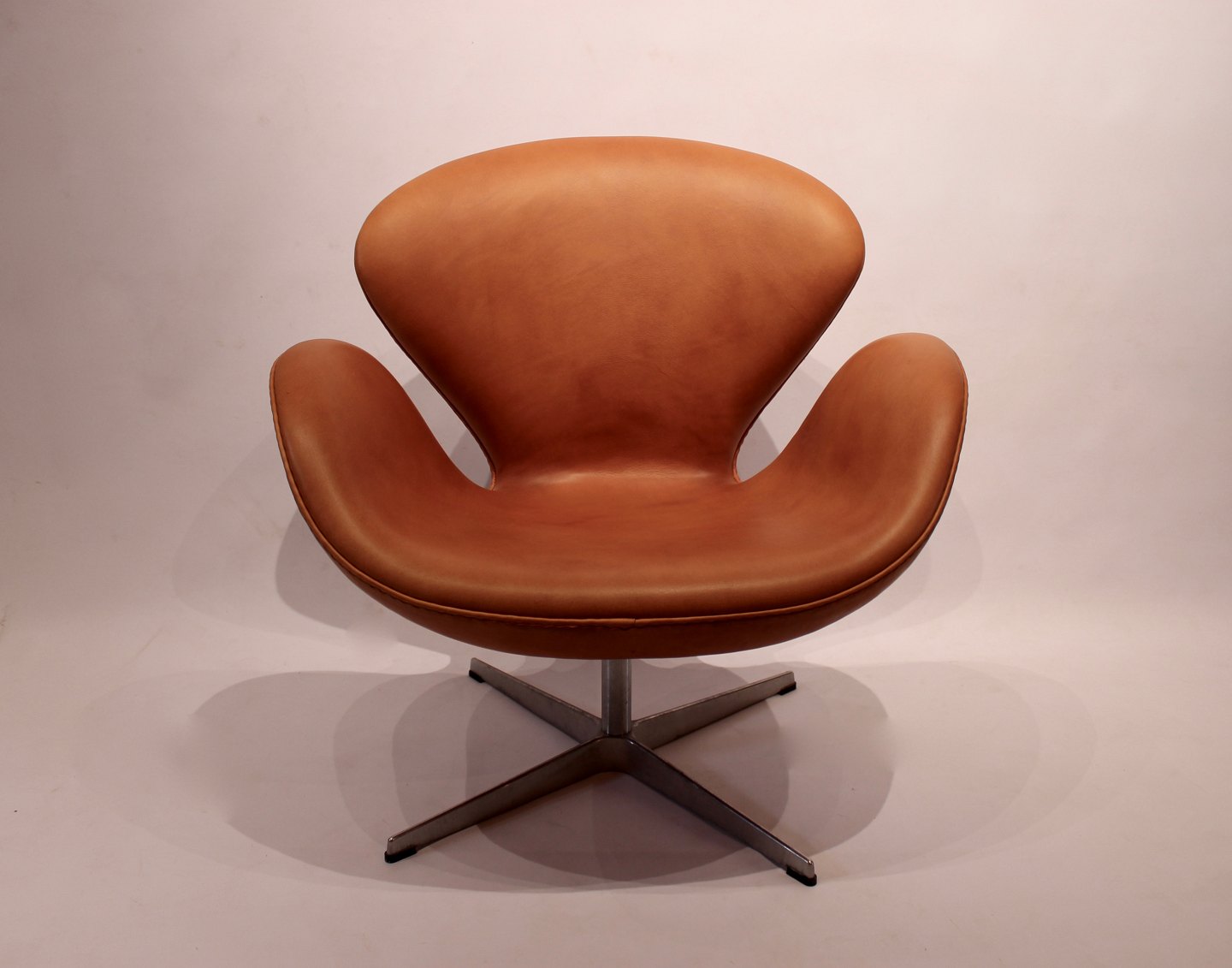Den polstrede version af Svane stolen, som du nævnte, er betrukket med cognac læder, hvilket tilføjer en luksuriøs følelse og varme til ethvert rum. Polstringen giver også en behagelig siddeoplevelse, der gør stolen ideel til både lounging og arbejde.