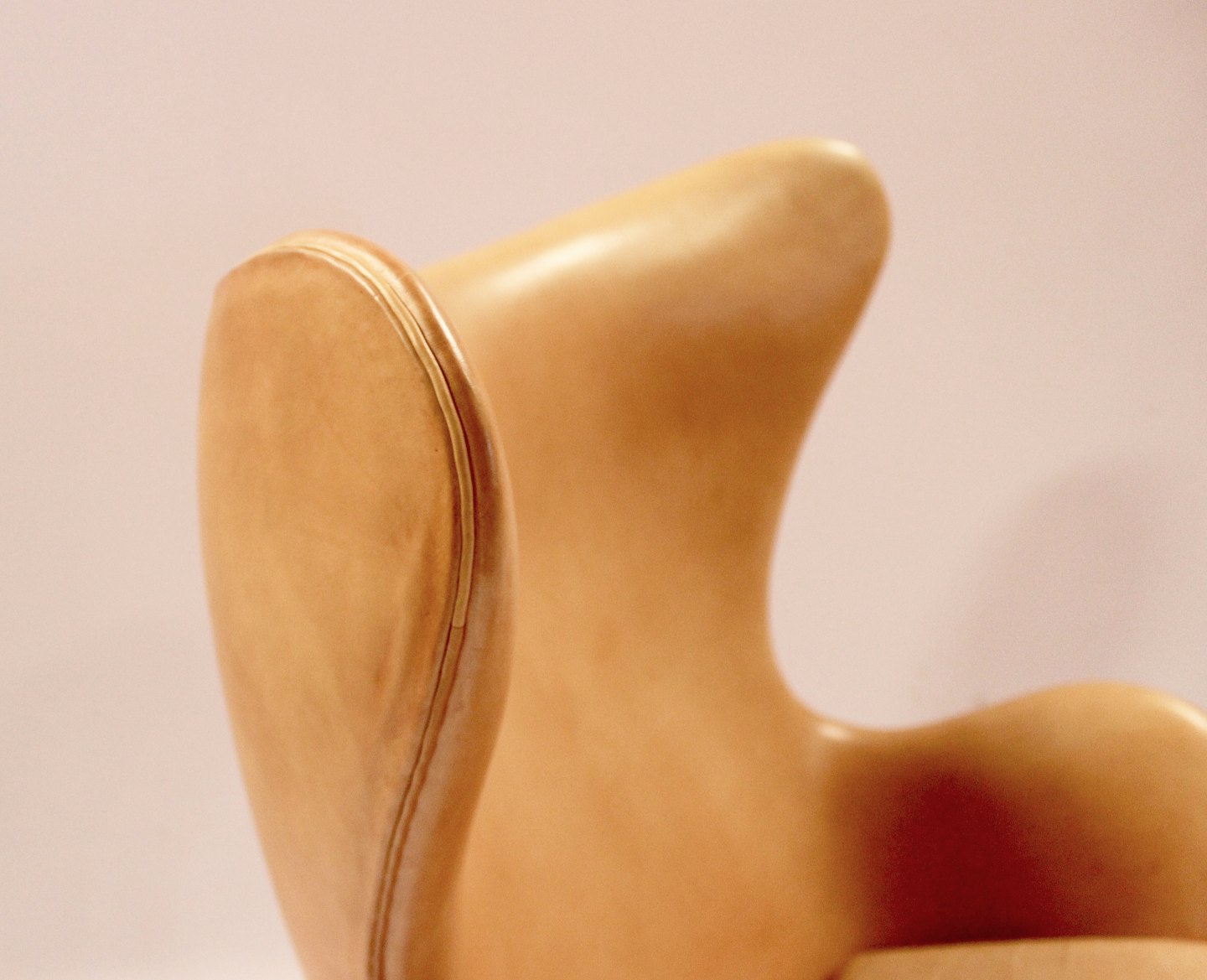 Arne Jacobsen designede Ægget til lobbyen i SAS Royal Hotel i København, hvor det blev et af de mest ikoniske møbler i moderne designhistorie. Stolen er kendt for sin innovative form, der omslutter brugeren og giver en følelse af privatliv og komfort. Skamlen er designet som en tilhørende del af sættet og er en perfekt ledsager til stolen, der giver yderligere afslapning.