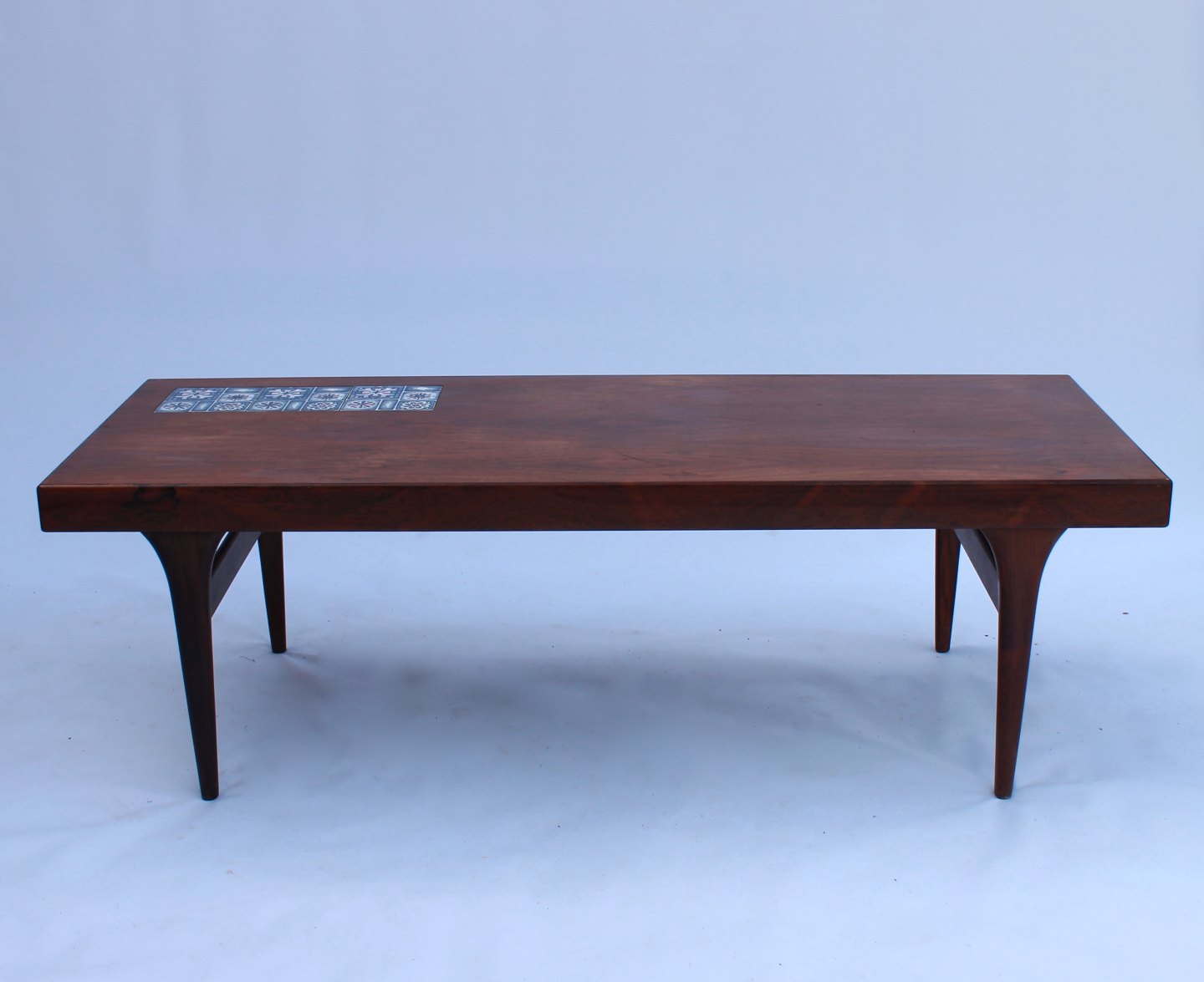 Sofabord i palisander med Kgl. porcelæn kakler designet af Johannes Andersen og fremstillet af Silkeborg Møbelfabrik i 1960erne. Bordet er i flot brugt stand.