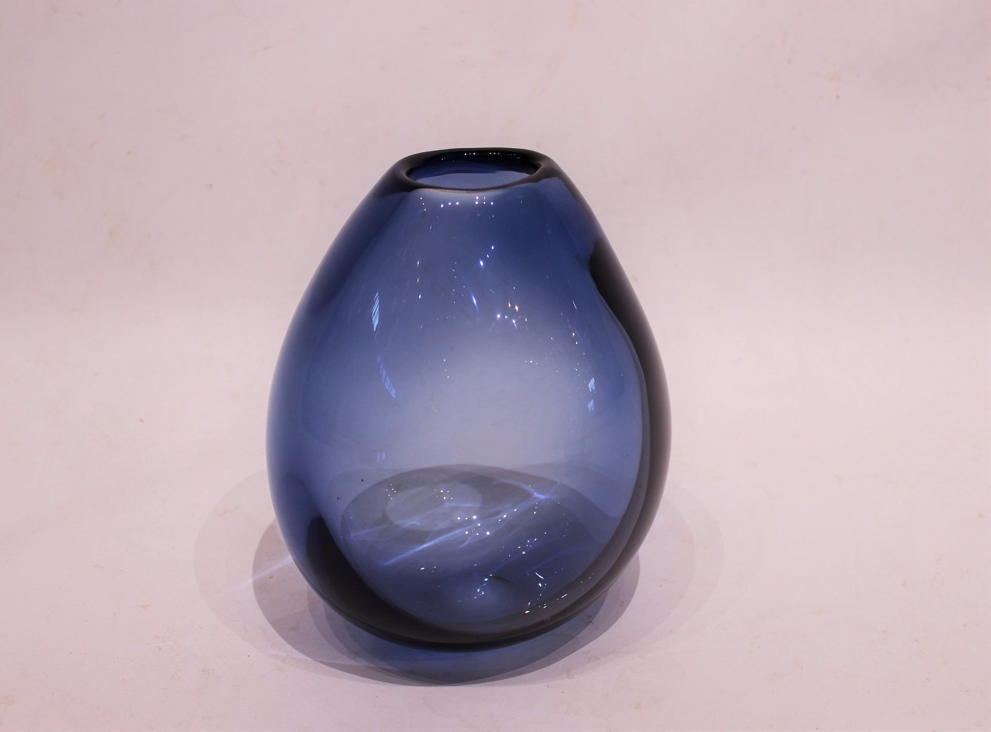 SolgtStor mørkeblå glasvase, "Dråben" af Per Lütken for Holmegaard.Vasen er i flot brugt stand.