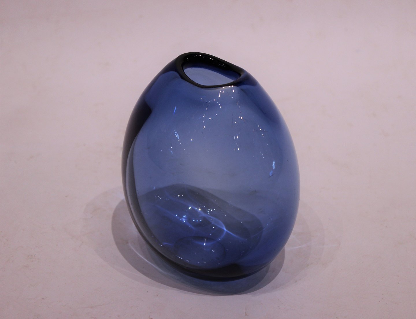 SoldSmall dark blue glass vase, "Rain drop" by Per Lütken for Holmegaard. The vase is in great vintage condition.