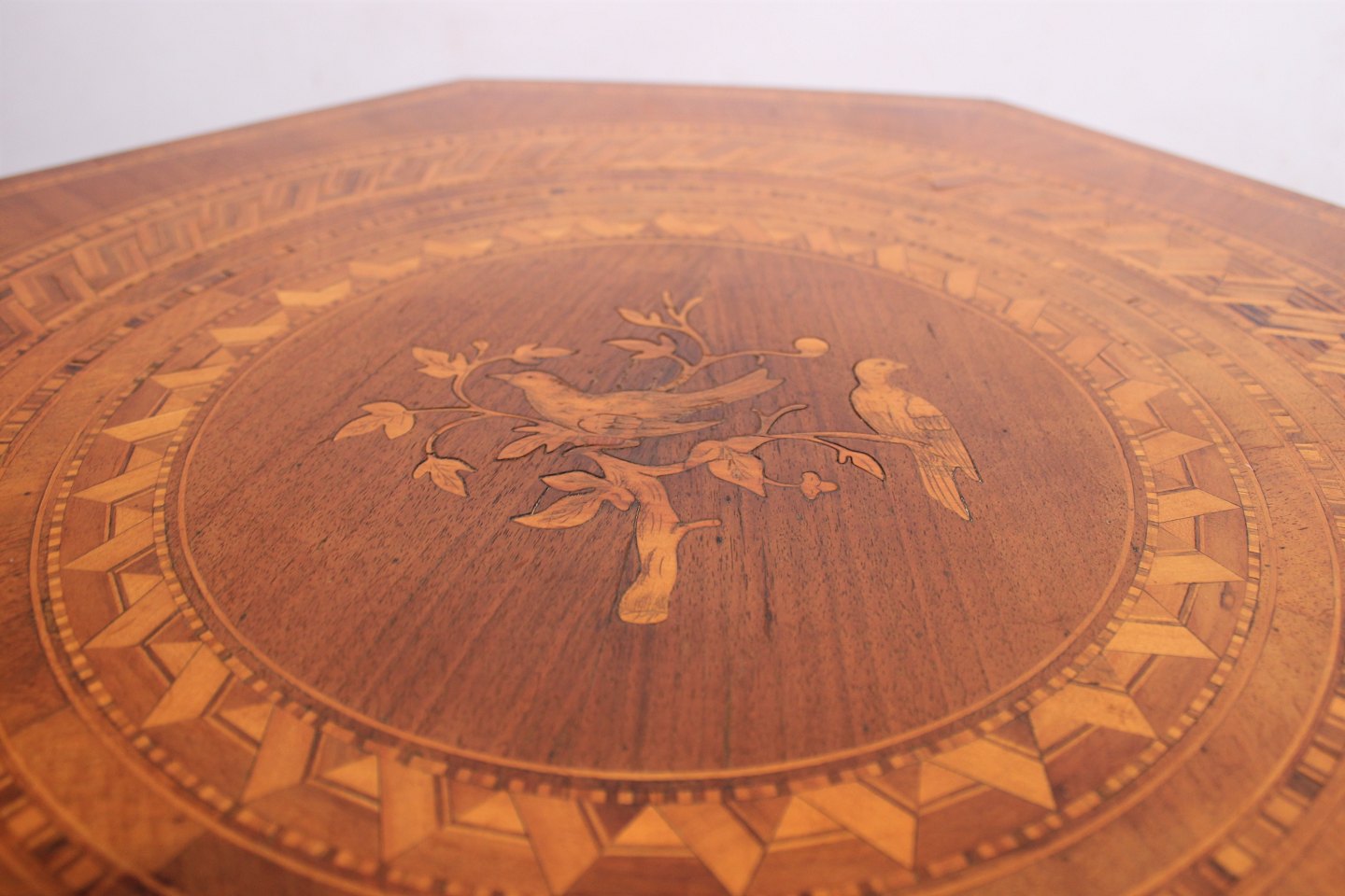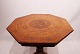 Italian lamp table of handpolished mahogany with inlaid intarsia of fruit wood from the 1880s.