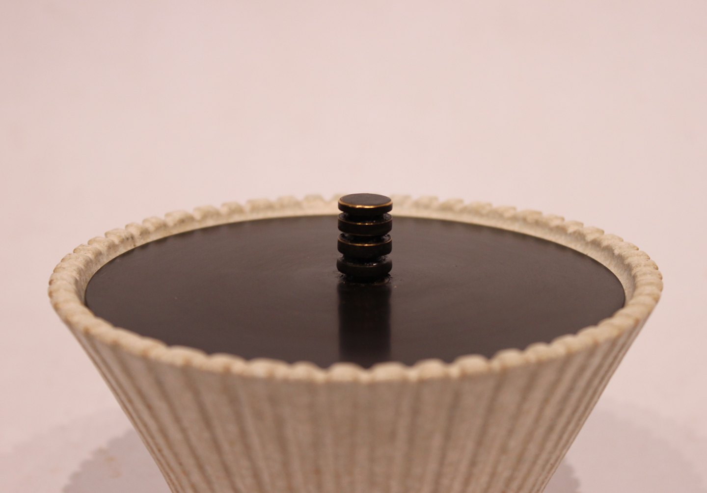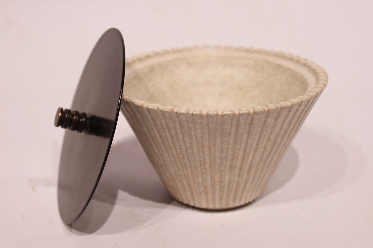 SoldCeramic bowl with lid of bronze by Arne Bang, no.: 119, from the 1930s. The bowl is in great vintage condtion.