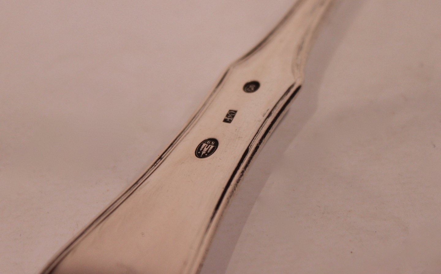 Mindre serveringsske i andet mønster af tretårnet sølv.