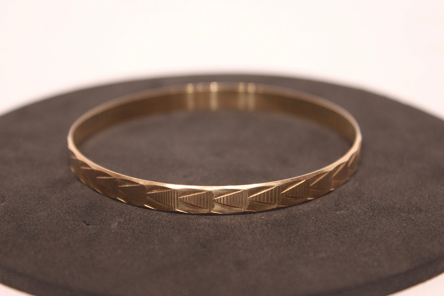 SoldBangle of 8 ct. gold with simple pattern, stamped AA.