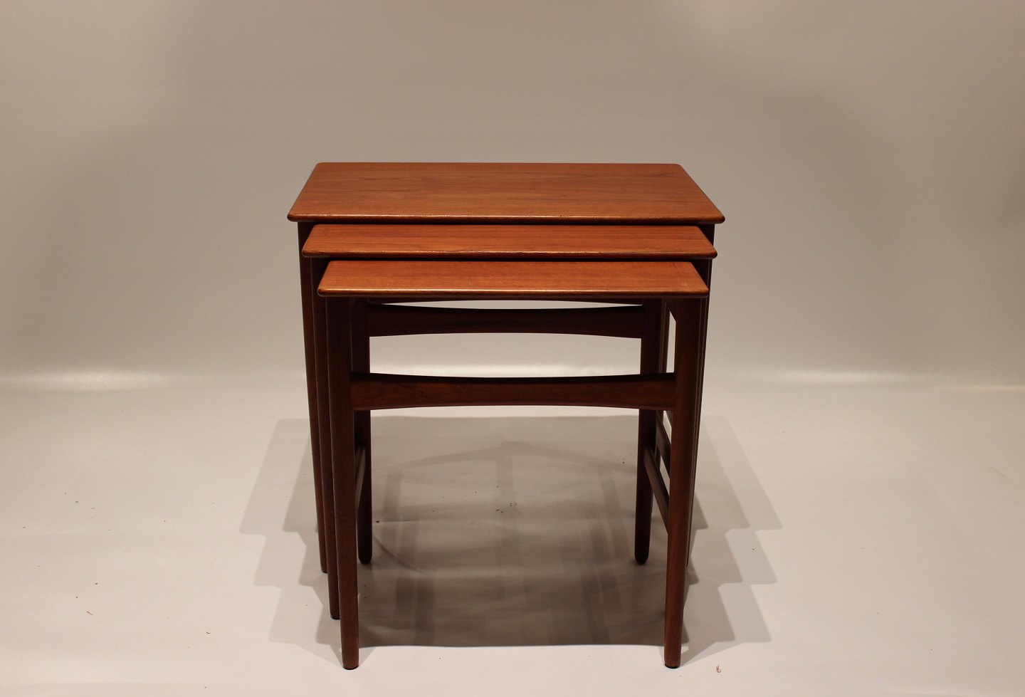 SoldSet of nesting tables in teak designed by Hans J. Wegner and from the 1960s. The tables are in great vintage condition.