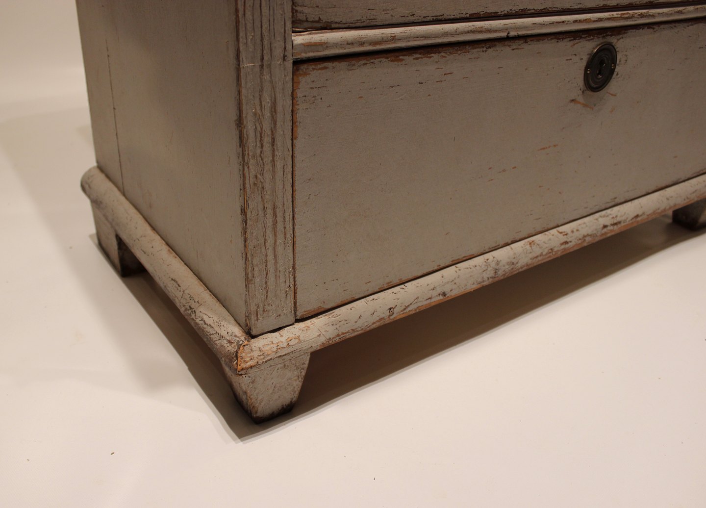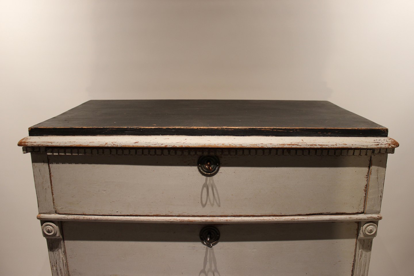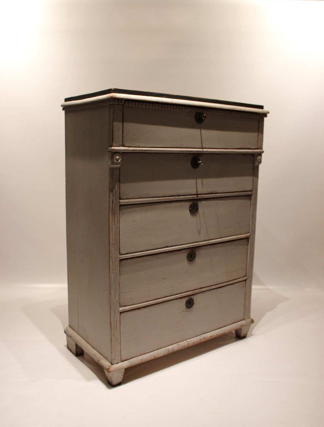 SoldGustavian grey painted chest of drawers with black topplate from the 1830s. The chest is in great vintage condition.