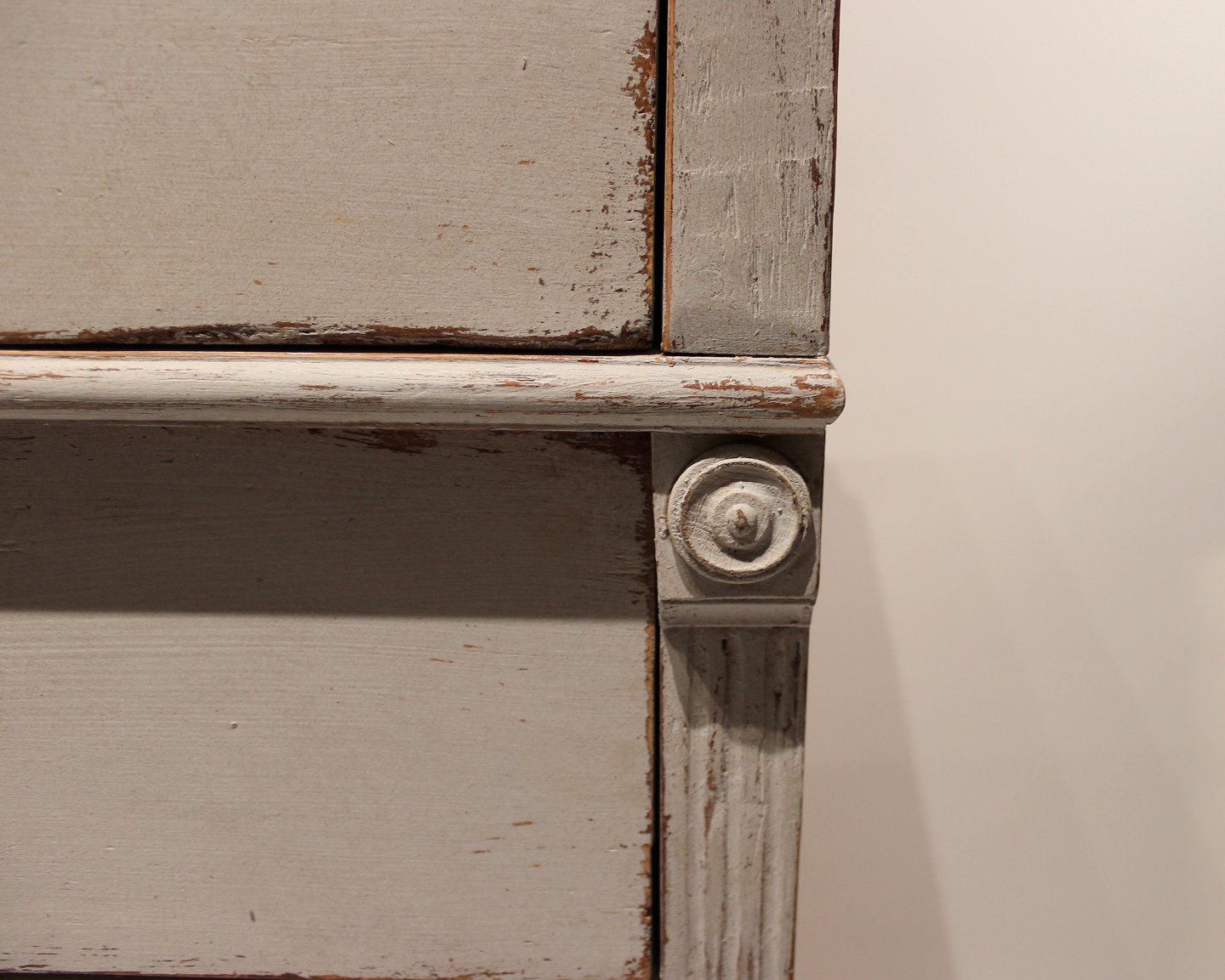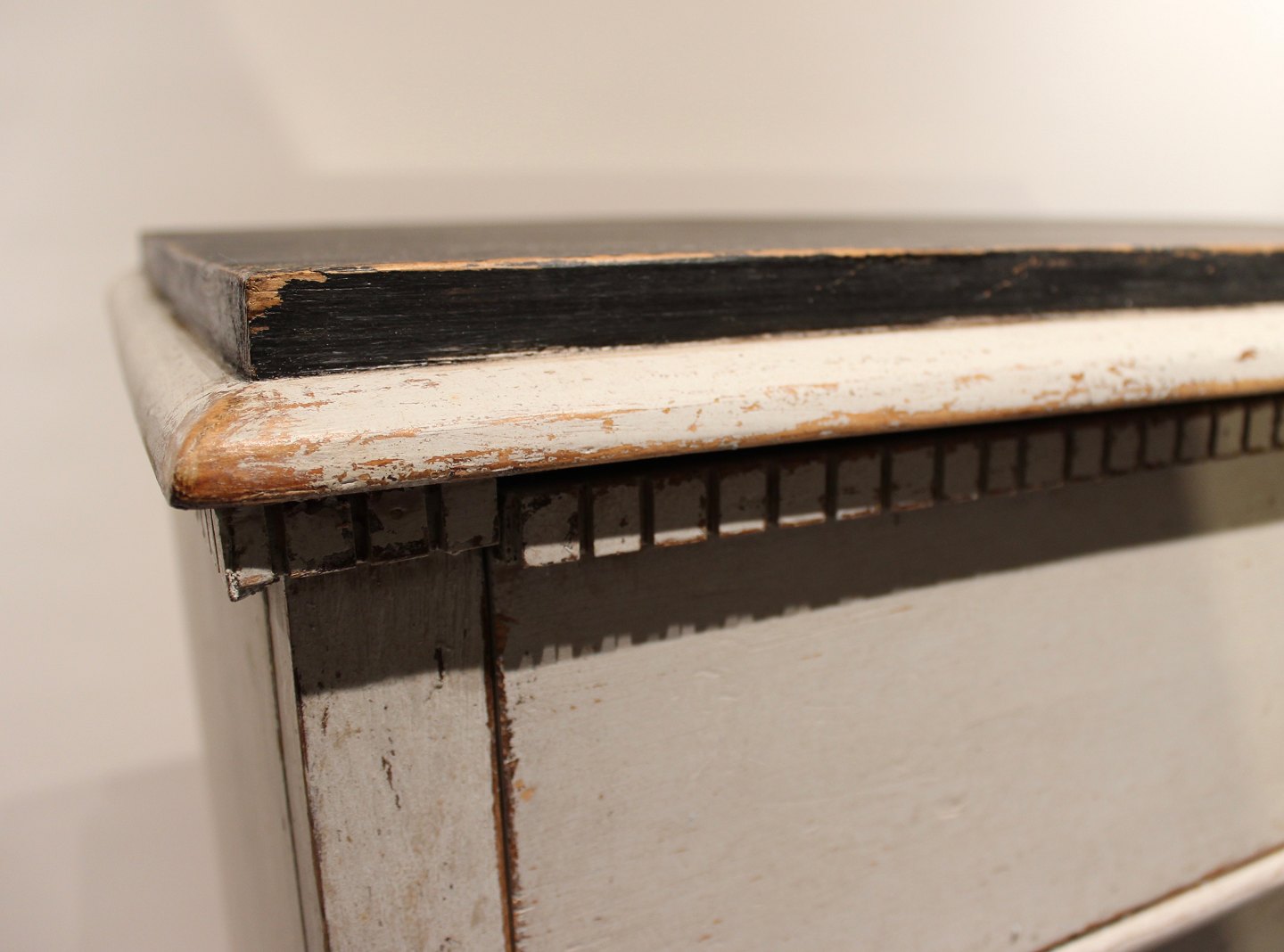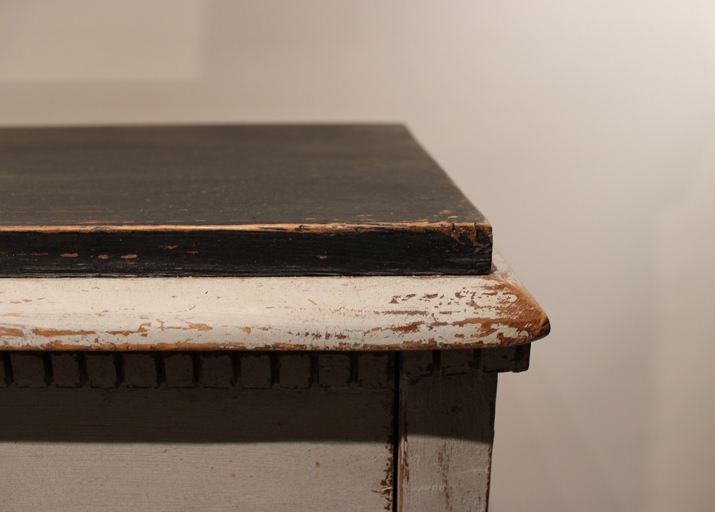 SoldGustavian grey painted chest of drawers with black topplate from the 1830s. The chest is in great vintage condition.