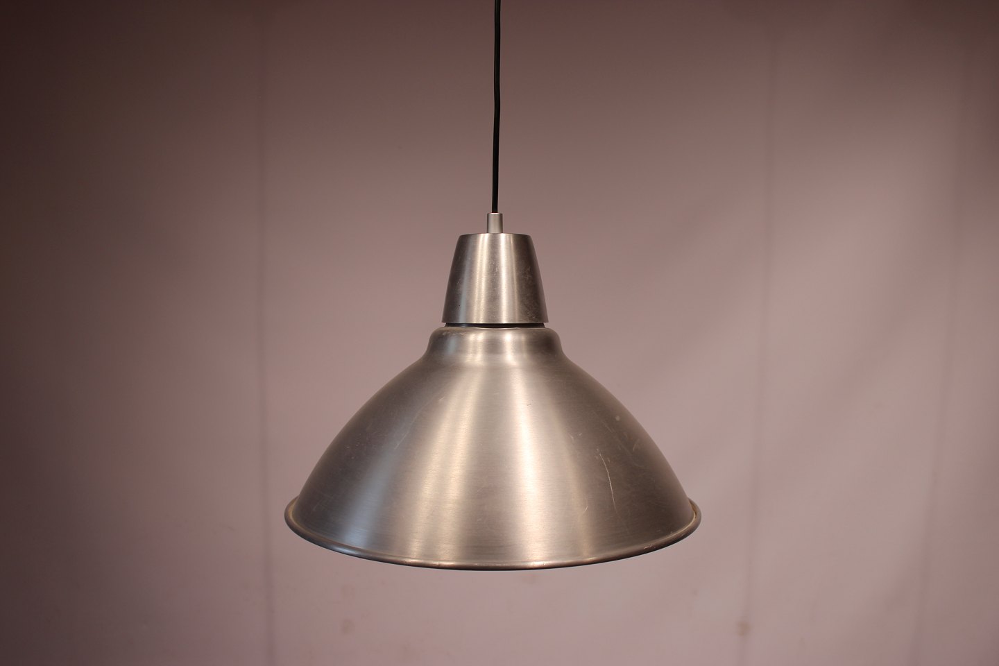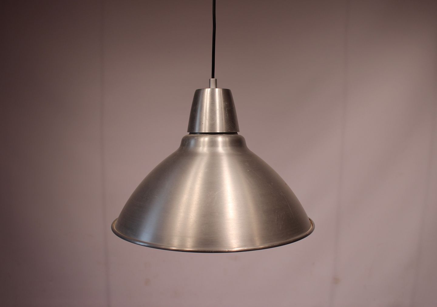 Værkstedslampe i aluminium af dansk design fra 1970erne. Lampen er i flot brugt stand.