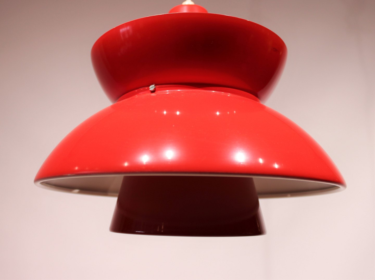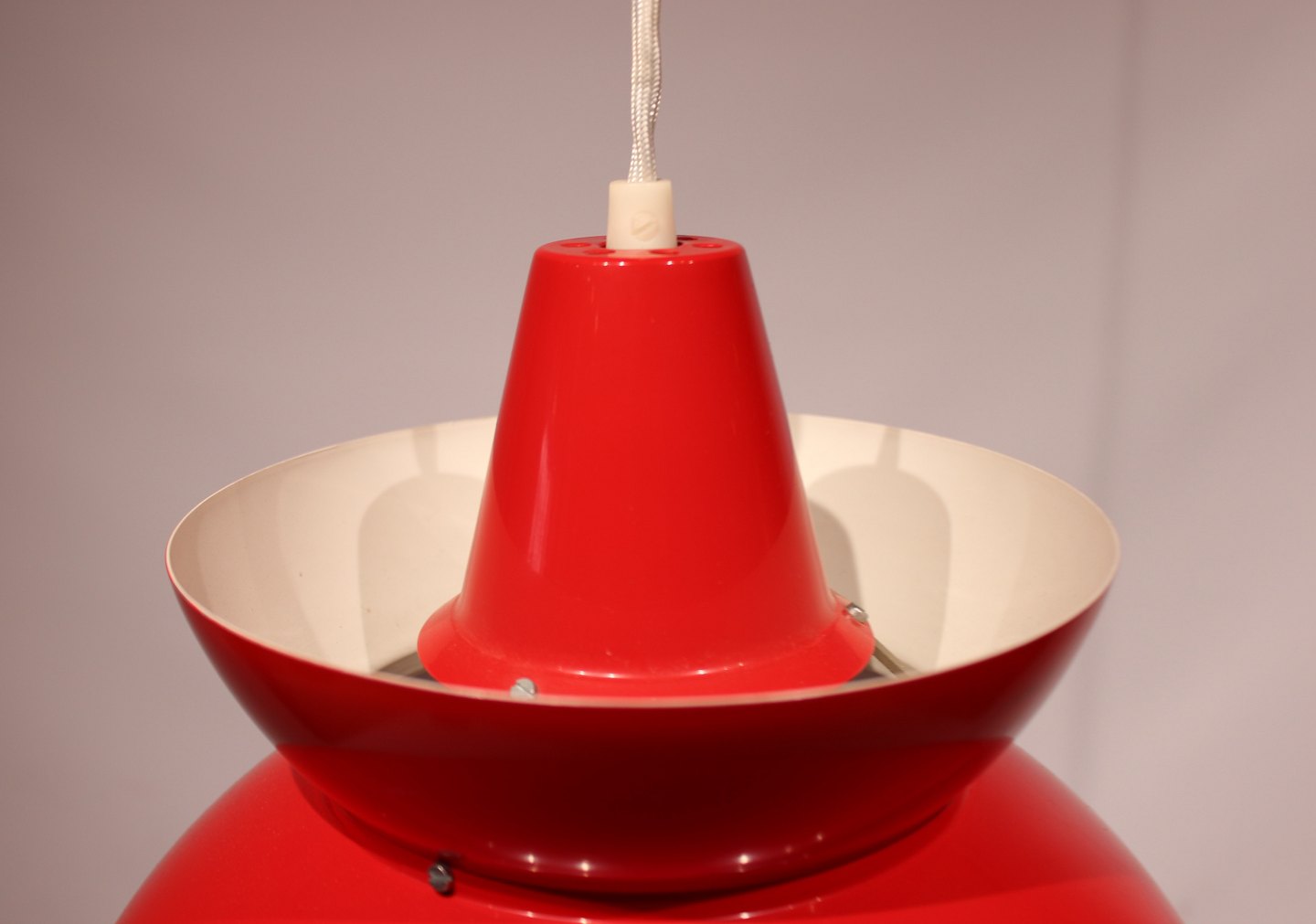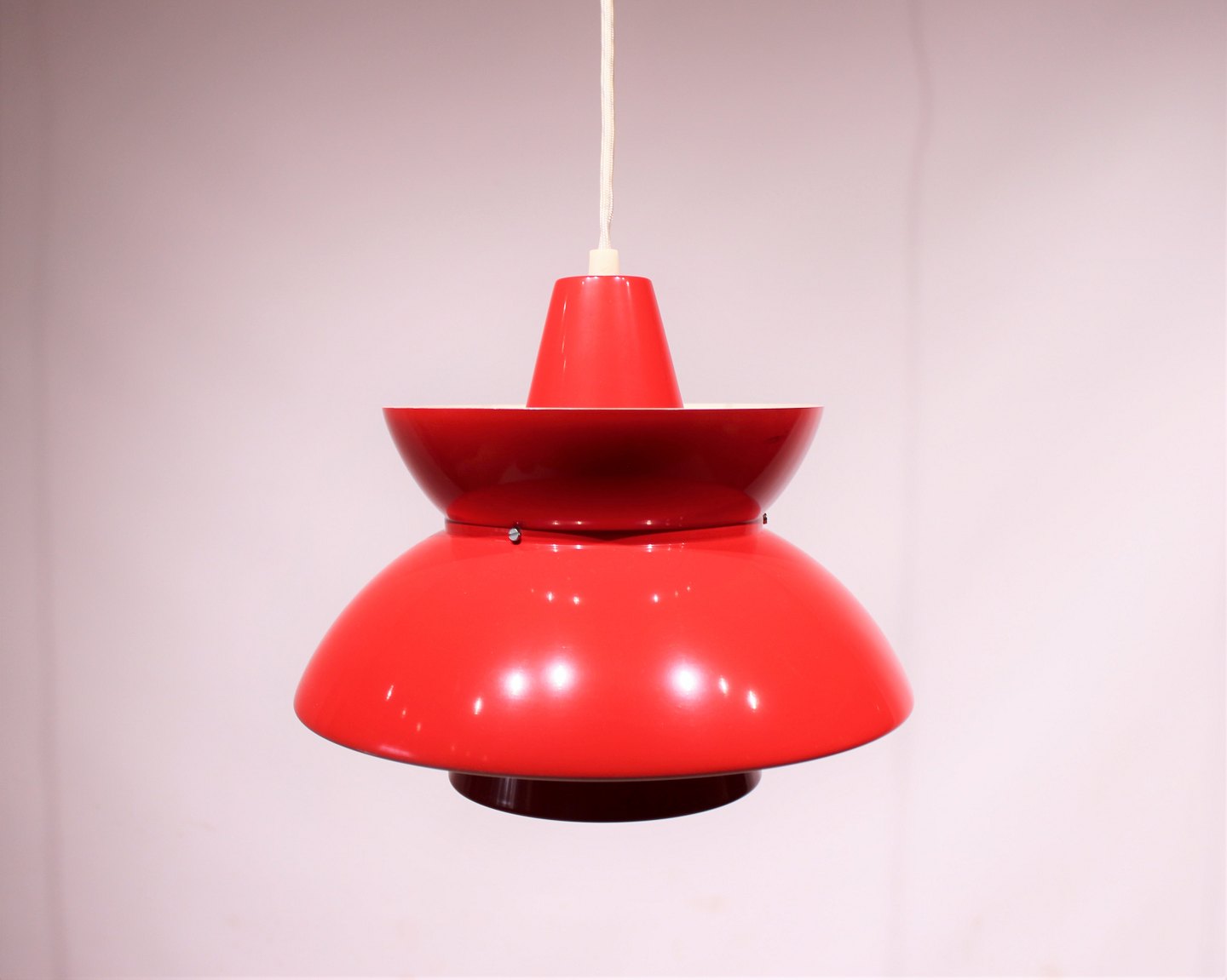 SoldA pair of "Søværns" pendants in red and white designed by Jørn Utzon and manufactured by Louis Poulsen in the 1960s. The lamps are in great vintage condition.
