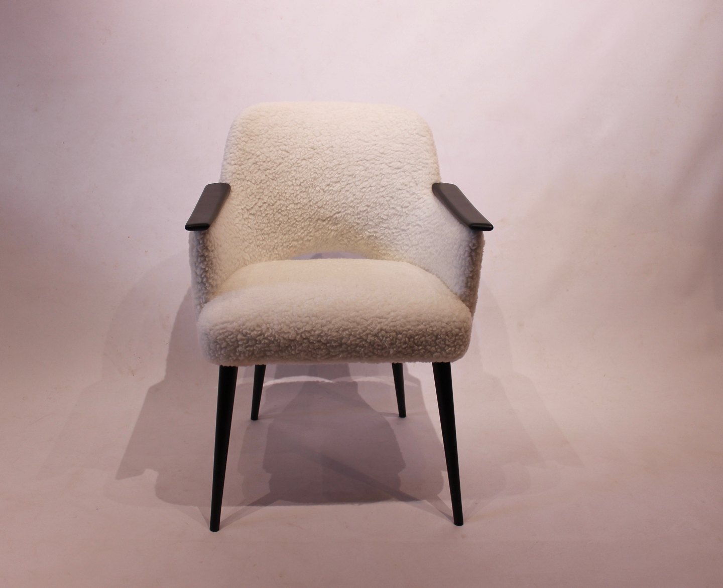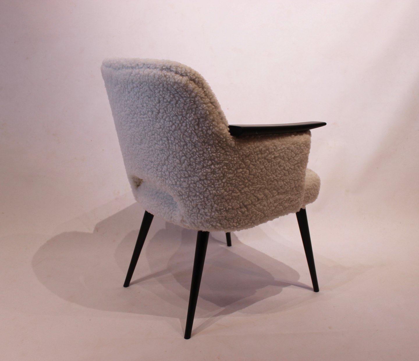 SolgtHvilestol polstret med fåreuld og med arme af sortmalet træ af dansk design fra 1960erne. Stolen er i flot brugt stand.