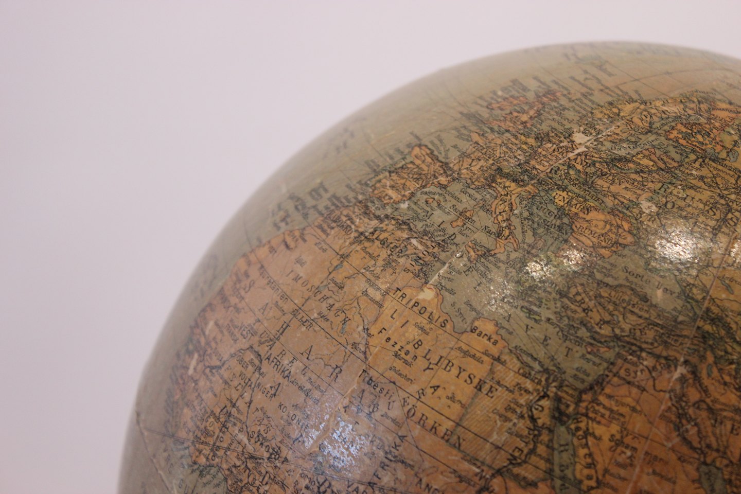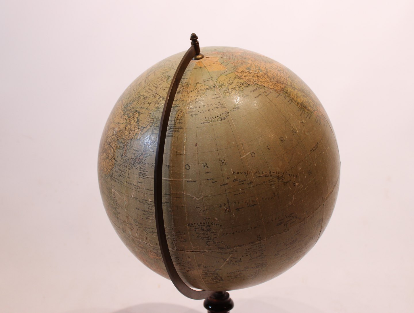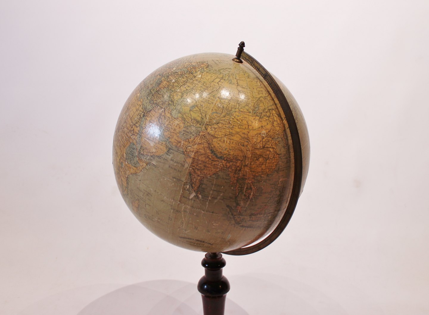 SoldAntique globe with frame of polished wood and brass from the 1940s. The globe is in great vintage condition.