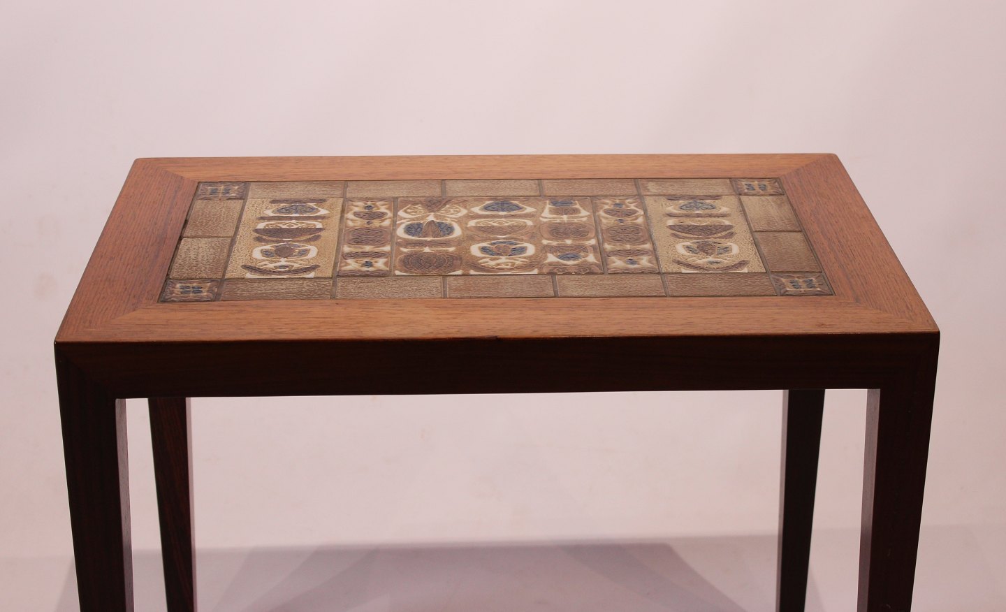 SoldSidetable in rosewood with Royal Copenhagen tiles by Severin Hansen for Haslev Furniture Factory. The table is in great vintage condition.
