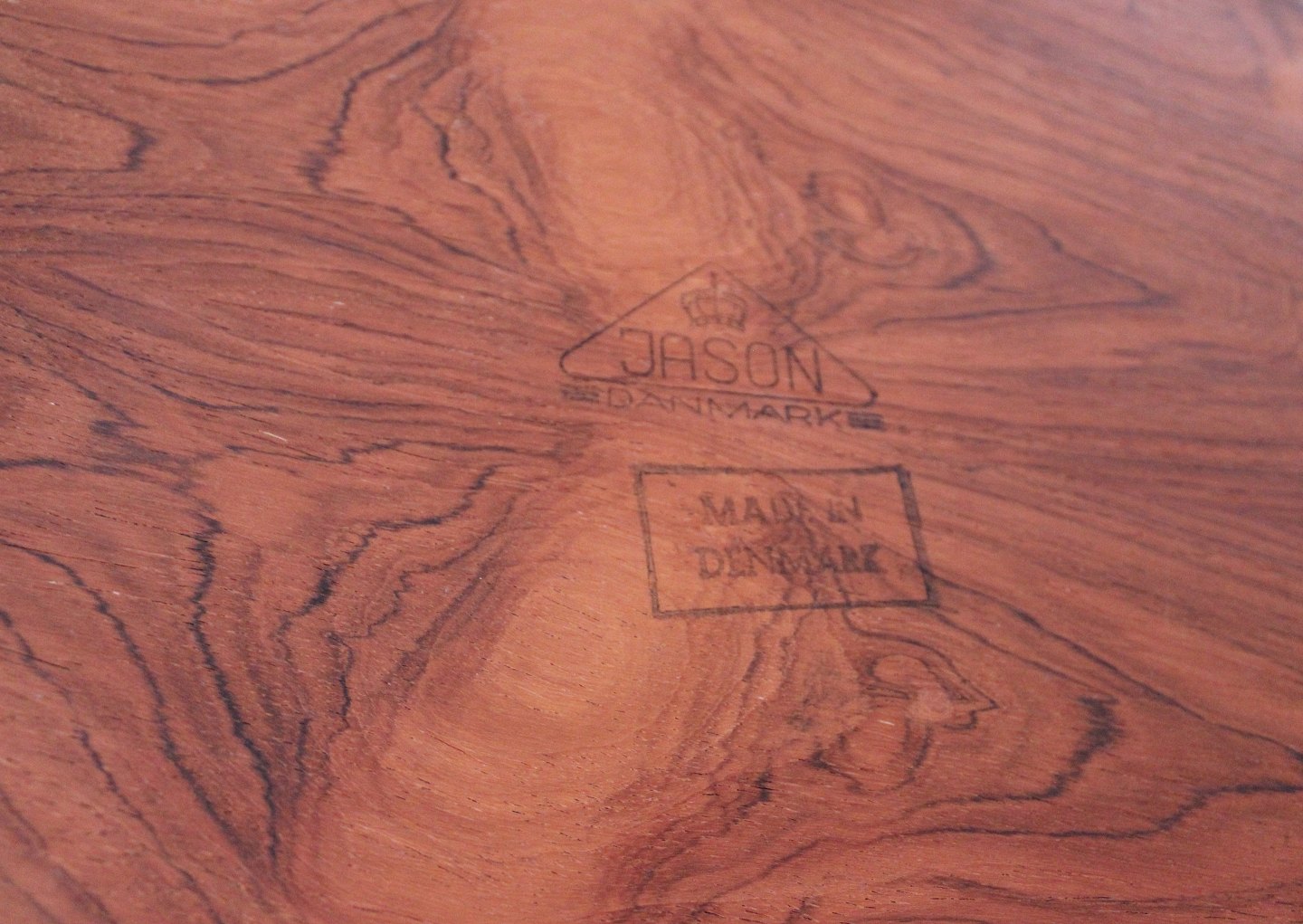 Designed and manufactured by Jason Design, a renowned Danish furniture manufacturer, this coffee table exudes the sleek and functional aesthetic that characterizes mid-20th century Danish design. The table's clean lines and minimalist silhouette highlight the craftsmanship and attention to detail characteristic of this era.