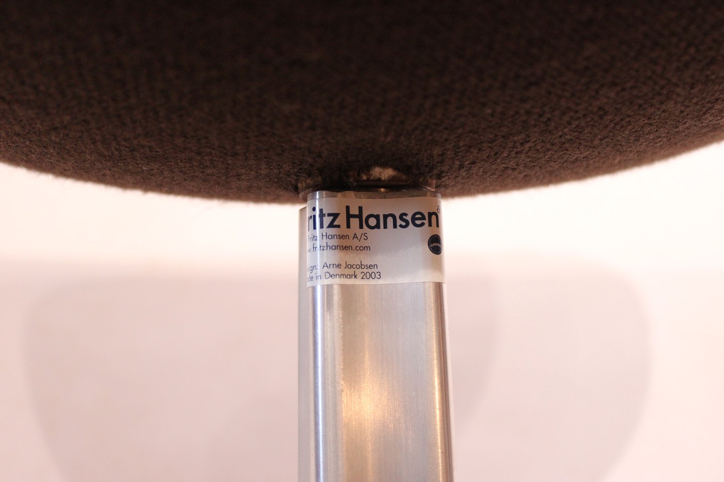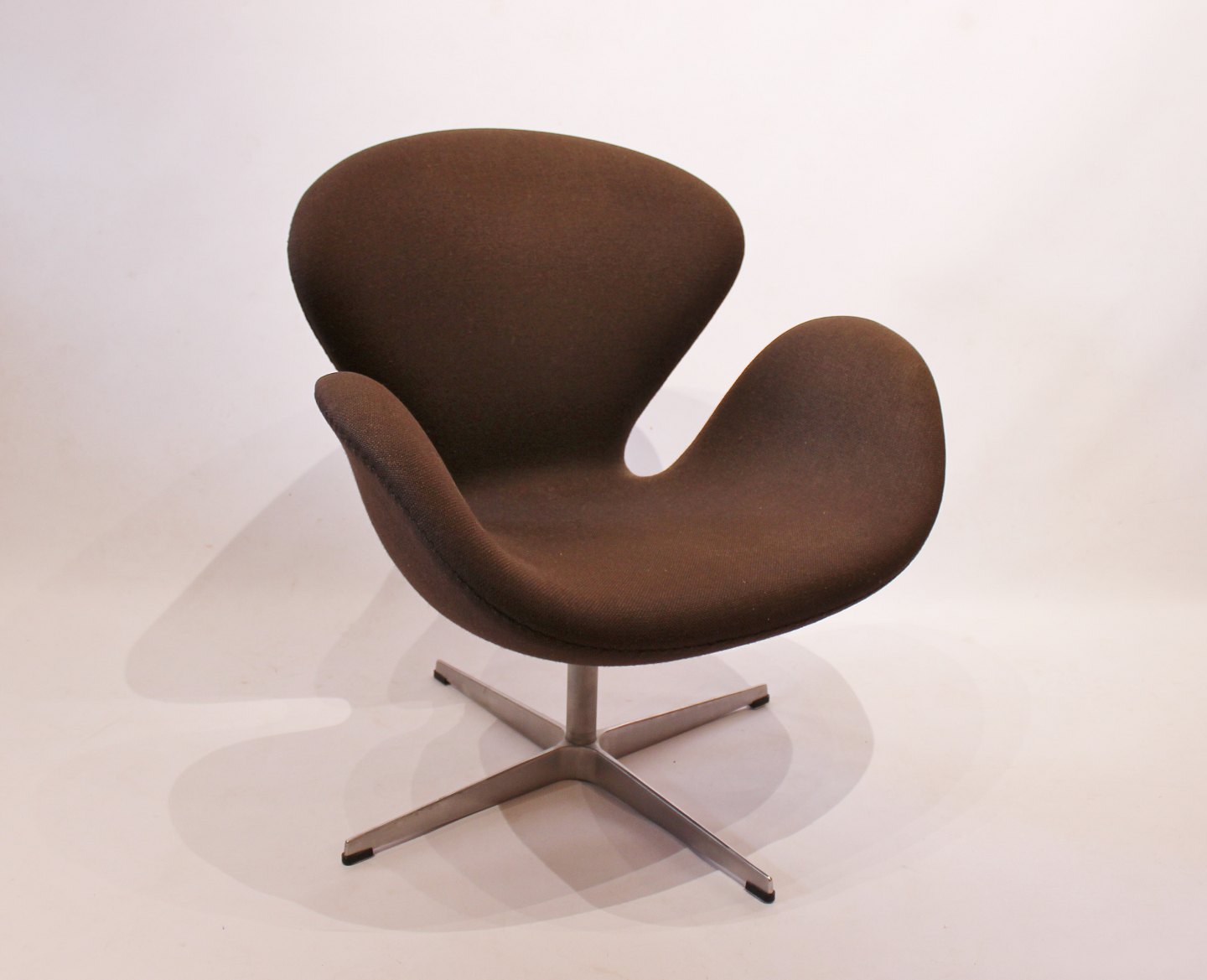 SoldThe Swan chair, model 3320, and stool, model 3127, designed by Arne Jacobsen in 1958 and manufactured by Fritz Hansen in 2001/2003. Both are upholstered with dark brown wool fabric and in great vintage condition.