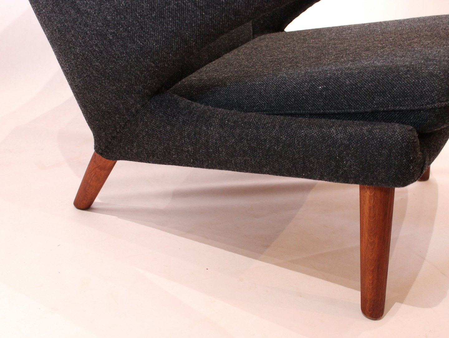 Hans J. Wegner, known for his skill in ergonomics and woodwork, created the Bams chair with a vision of combining comfort and aesthetics. The chair has wide, padded armrests and a high back that provides excellent support and comfort. The solid wooden legs, typically made of oak or walnut, add a warm and natural contrast to the padded seat and back.