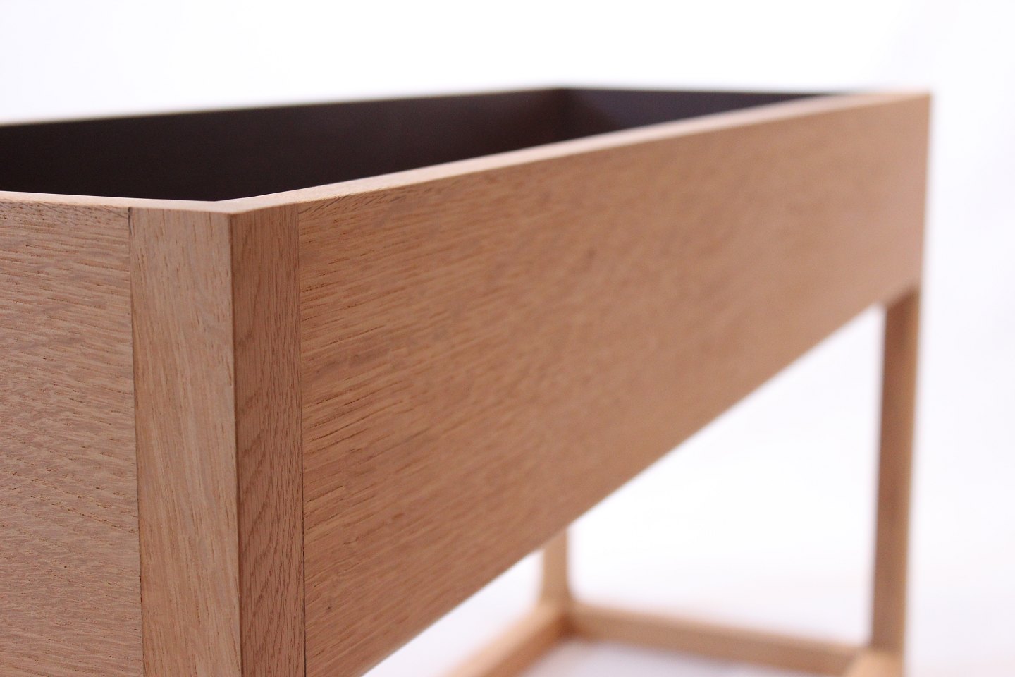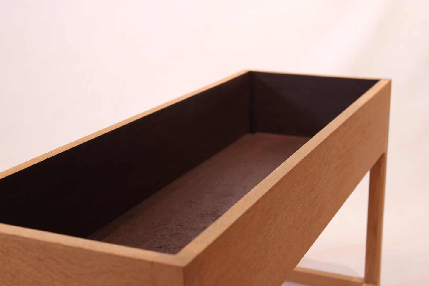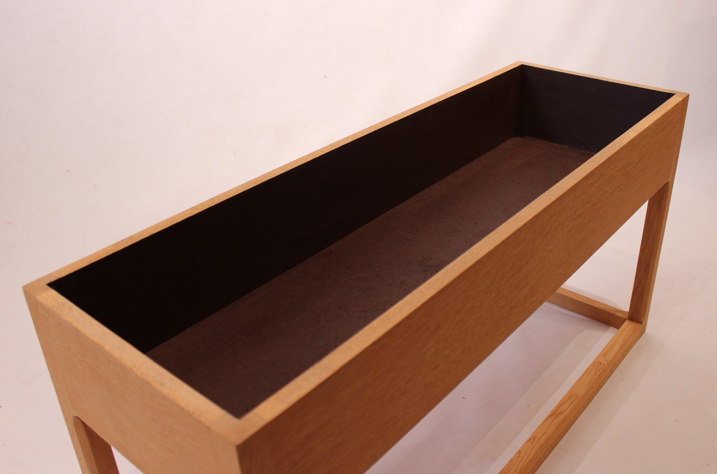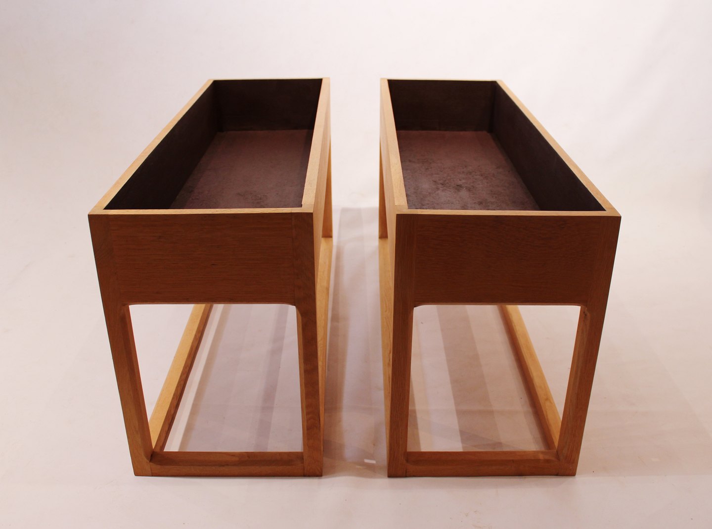 A pair of flower boxes of light soap treated oak, danish design from the 1960s.
