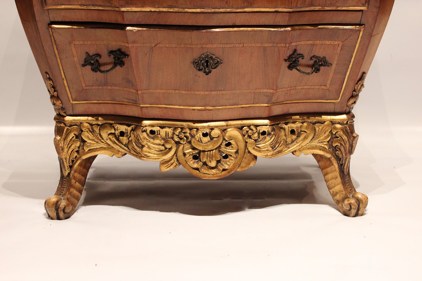 SolgtRokoko bombéformet nøddetræ kommode fra Danmark omkring år 1880. Kommoden er i flot antik stand.