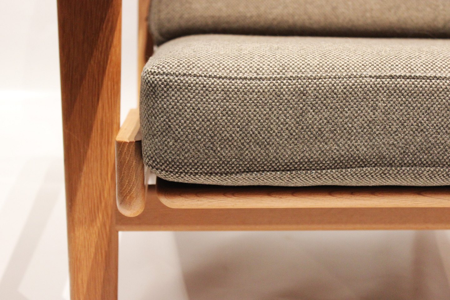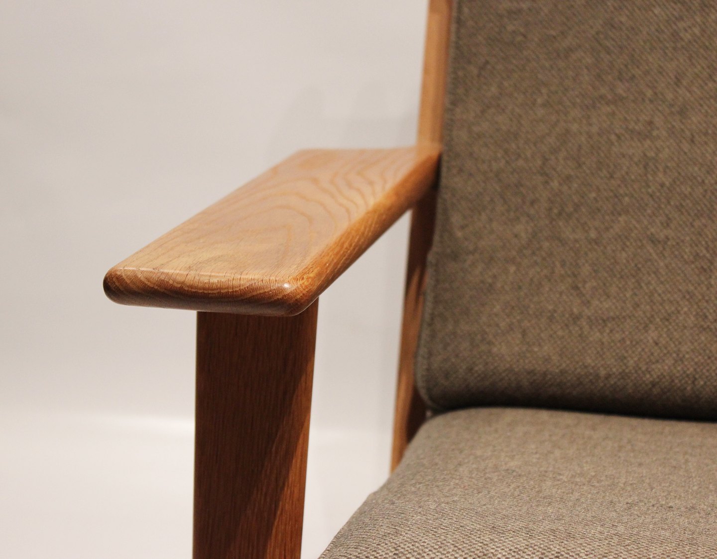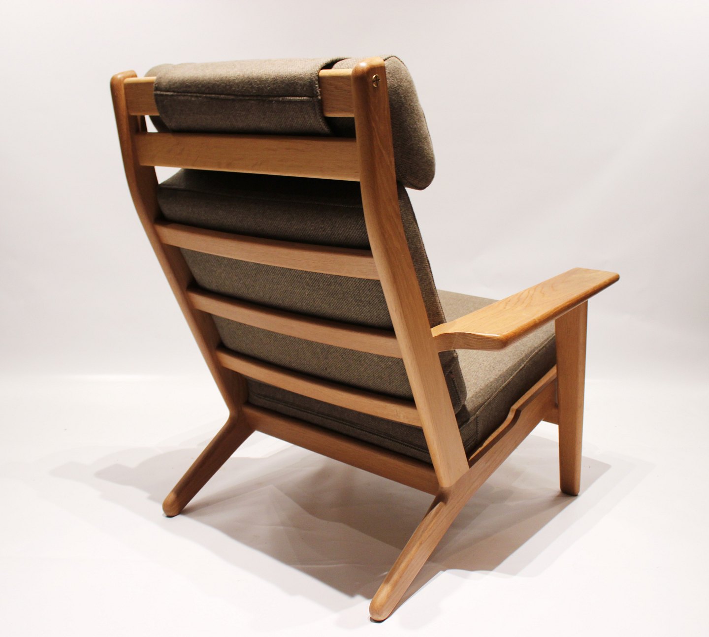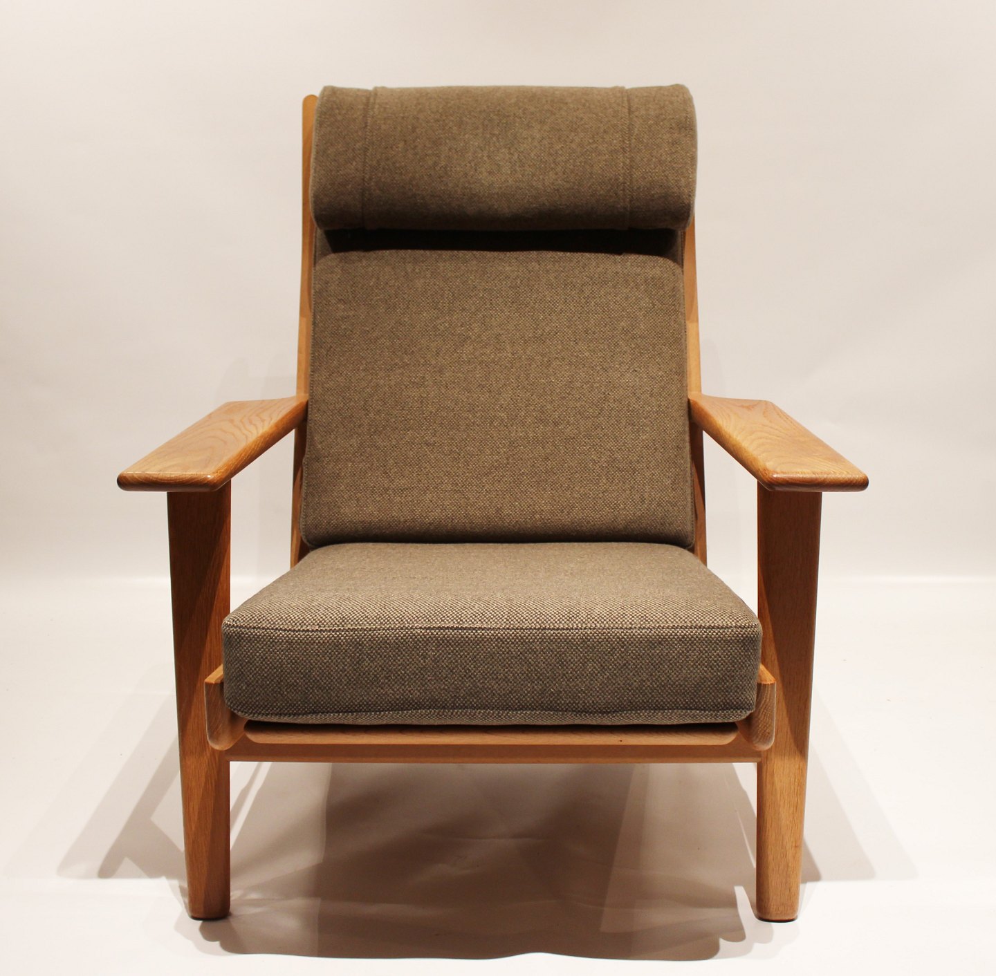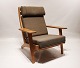 SoldEasy chair, model GE290A, and stool designed by Hans J. Wegner and manufactured by Getama in the 1960s. The chair and stool are of soap treated oak and upholstered with dark green Hallingdal wool.