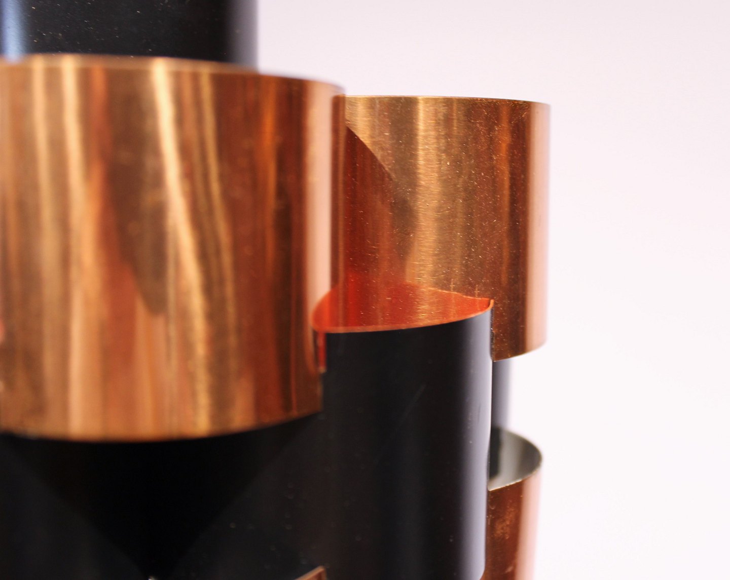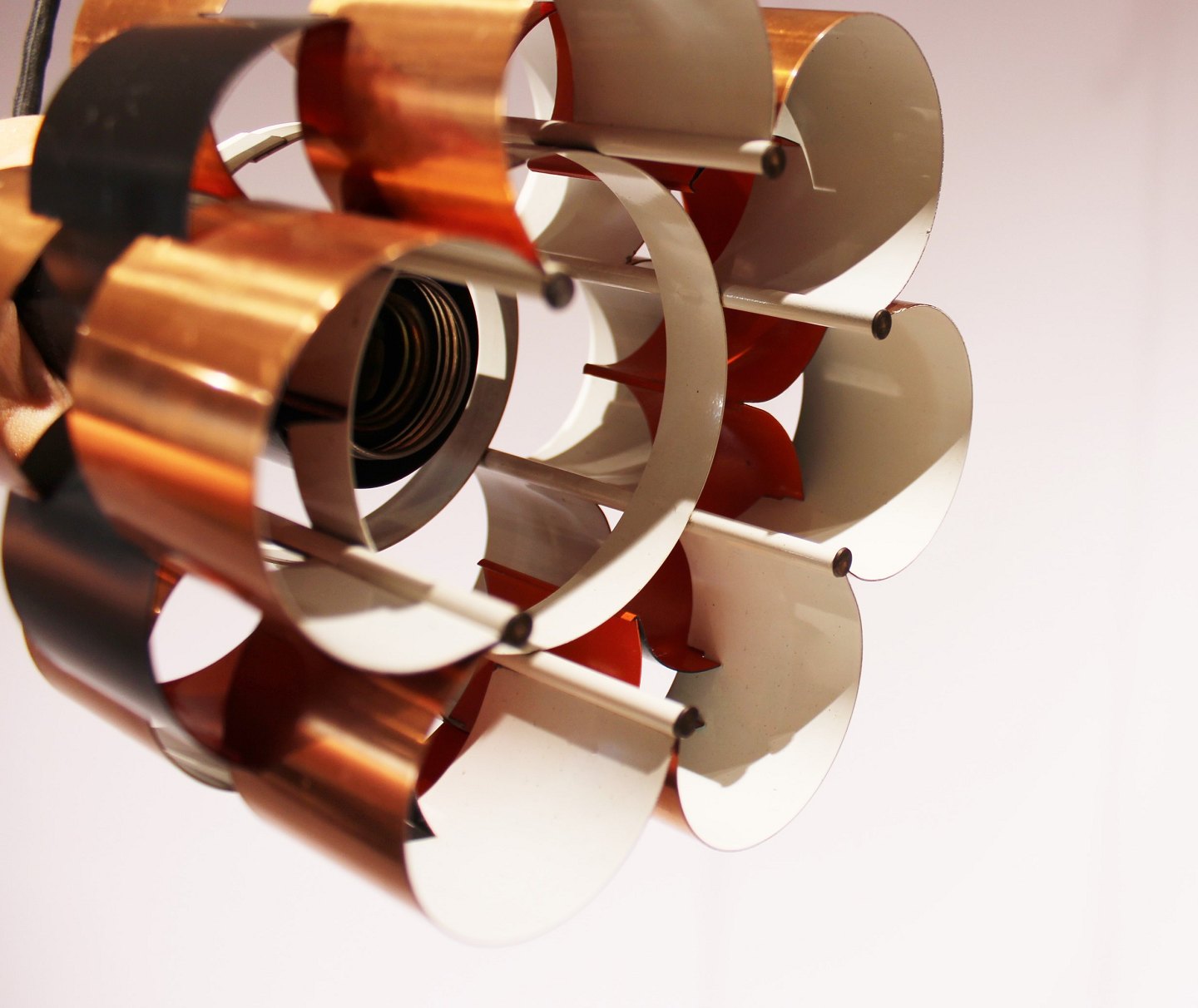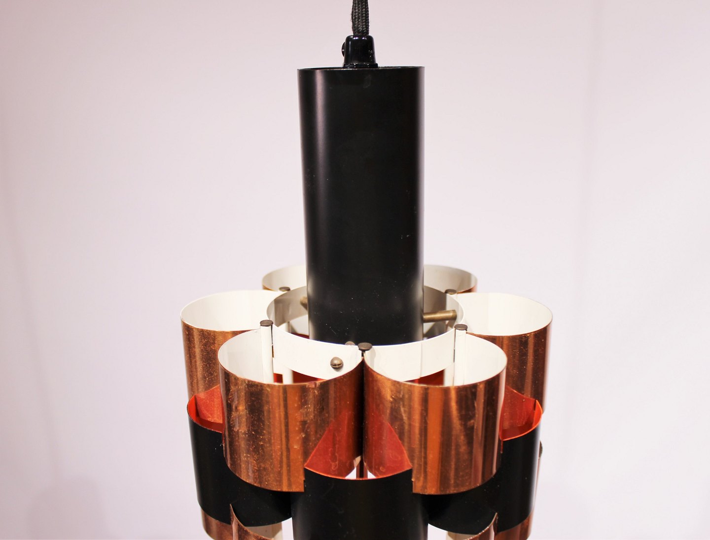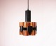 A pair of ceiling pendants in of cobber and black lacquered metal by Werner Schou from the 1960s.