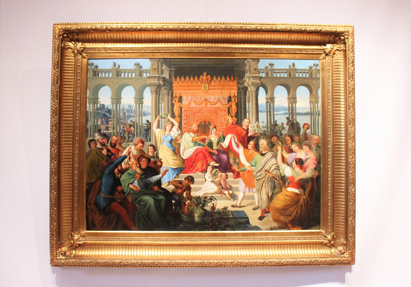 Oil painting on canvas from the 19th century by the German painter G. Otti. The painting is called "Der Niebelunge Liet", a scene which probably represents the wedding of Attila and the German princess Ildikó.