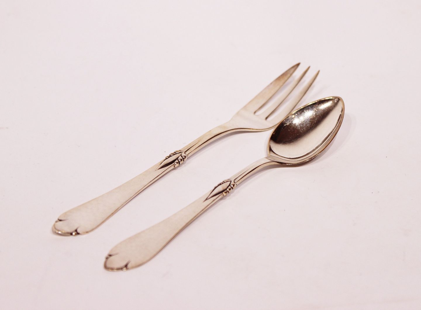 Se prisen i varebeskrivelsenKagegaffel og teske i Freja , tretårnet sølv. Spørg for antal på lager.