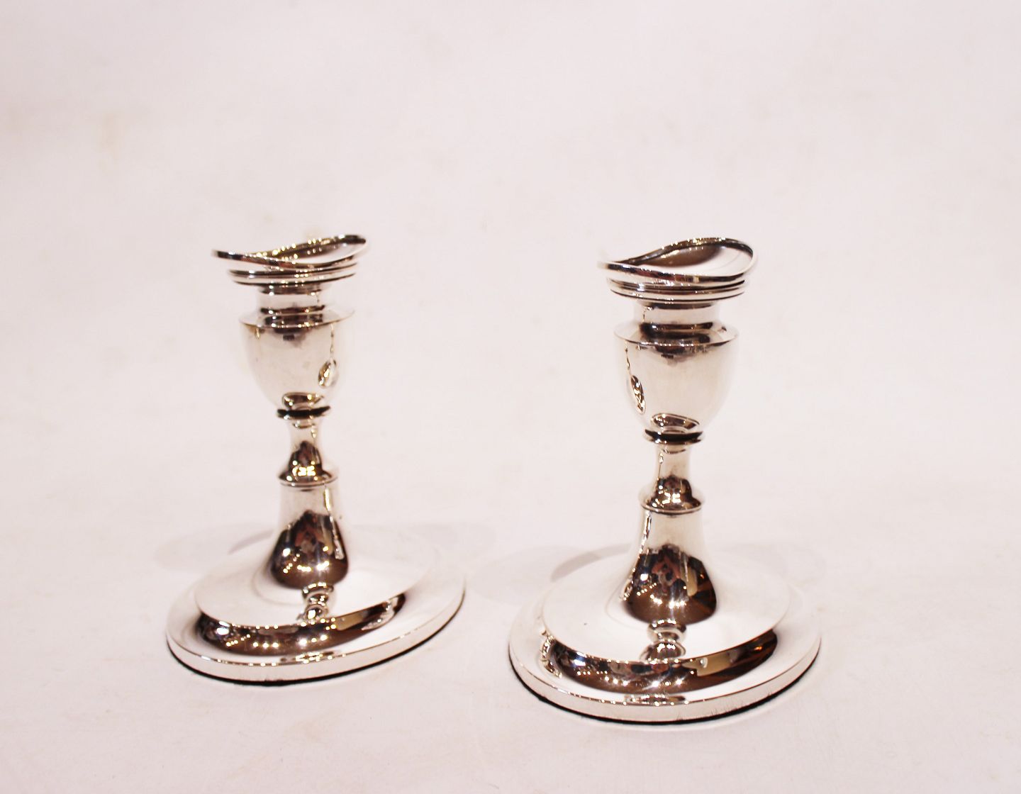A pair of candlesticks of hallmarked silver, in great vintage condition. We have an extra in stock.