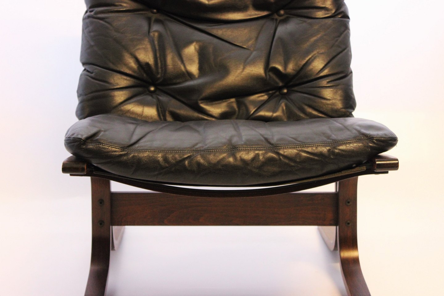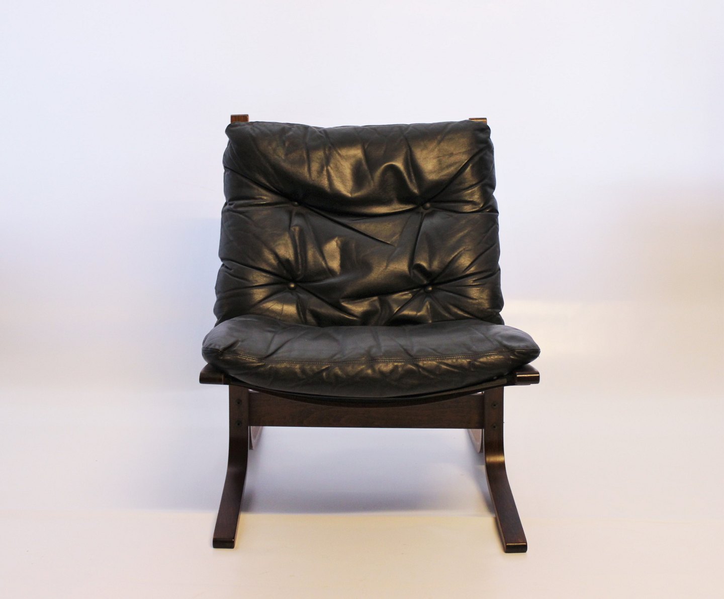 SoldA pair of Siesta easy chairs of black leather and dark wood, designed by Ingmar Relling and manufactured by Westnofa in the 1960s. The chairs are in great vintage condition.