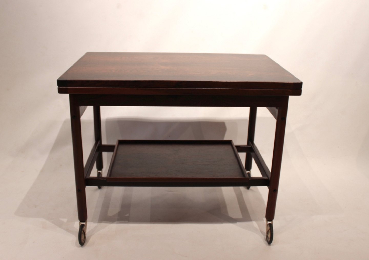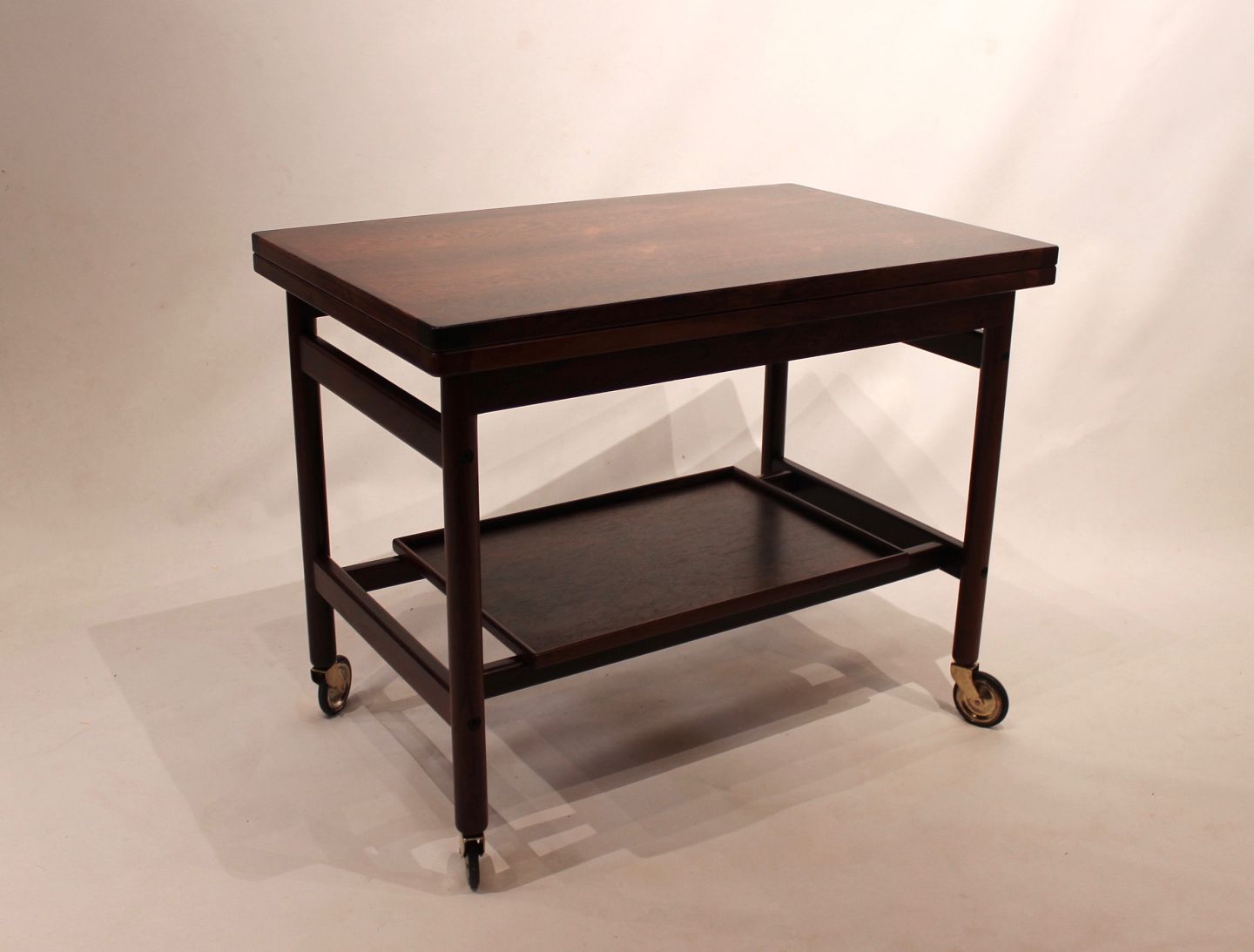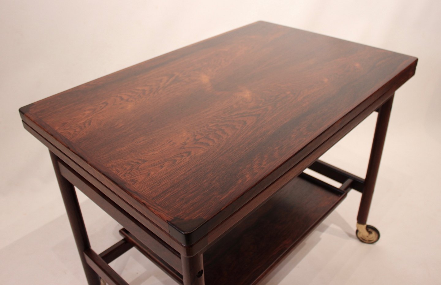 Table on wheels in rosewood of danish design from the 1960s. The table can be extended and is in great vintage condition.